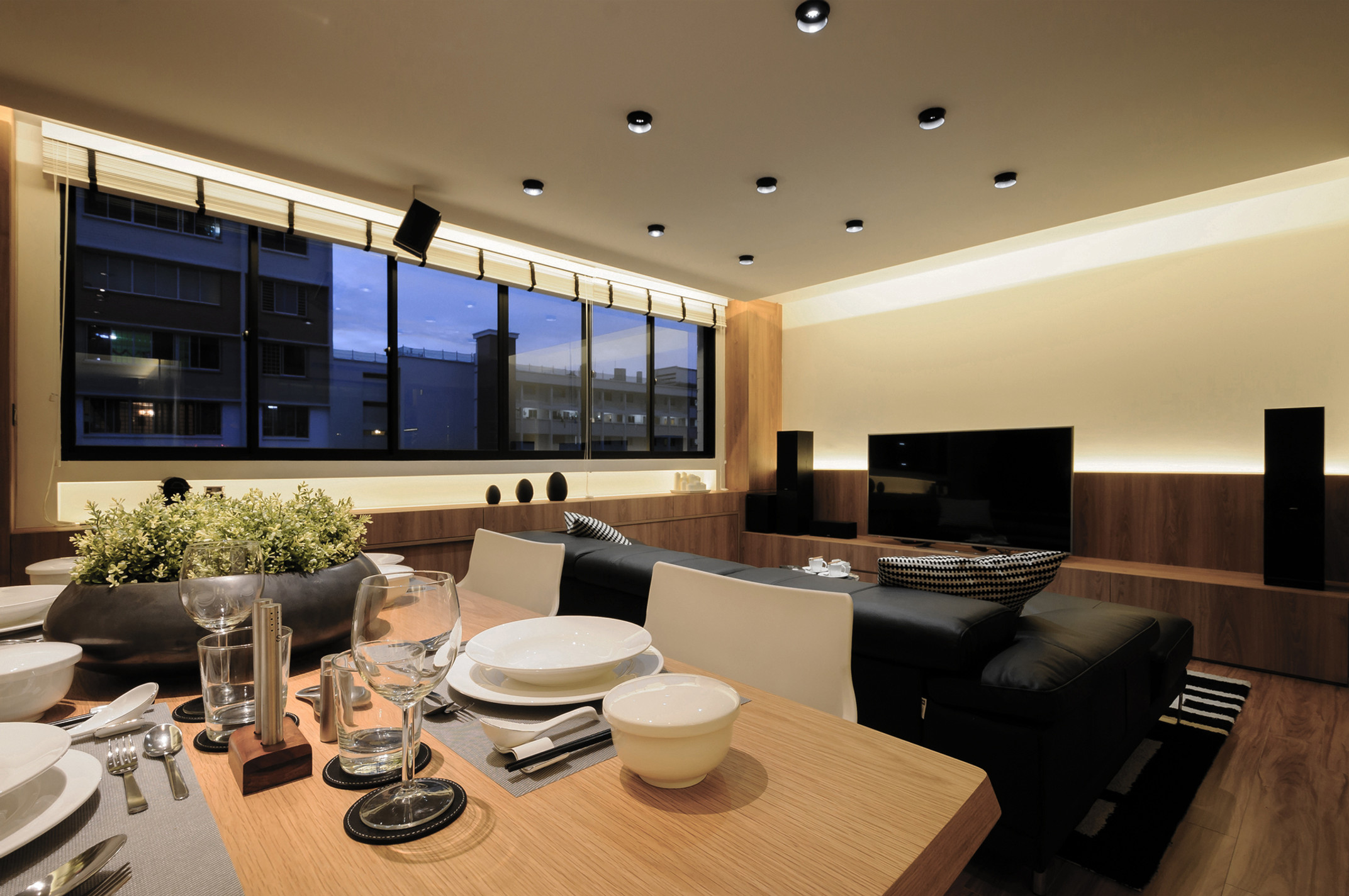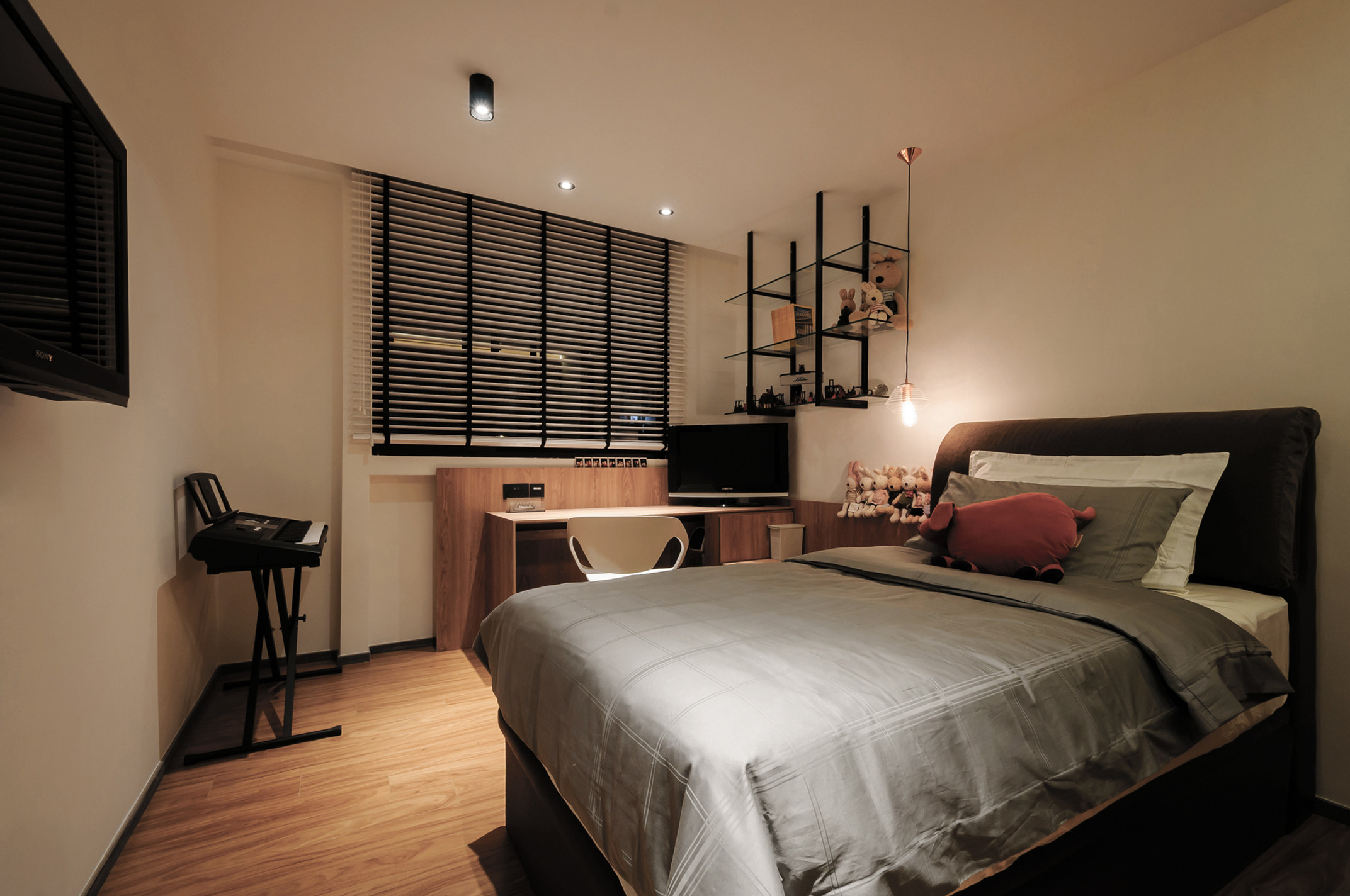 The Living Area is convertible to a relaxed discussion corner with a writing board which also doubles up as the separation panel between my room and the living room.