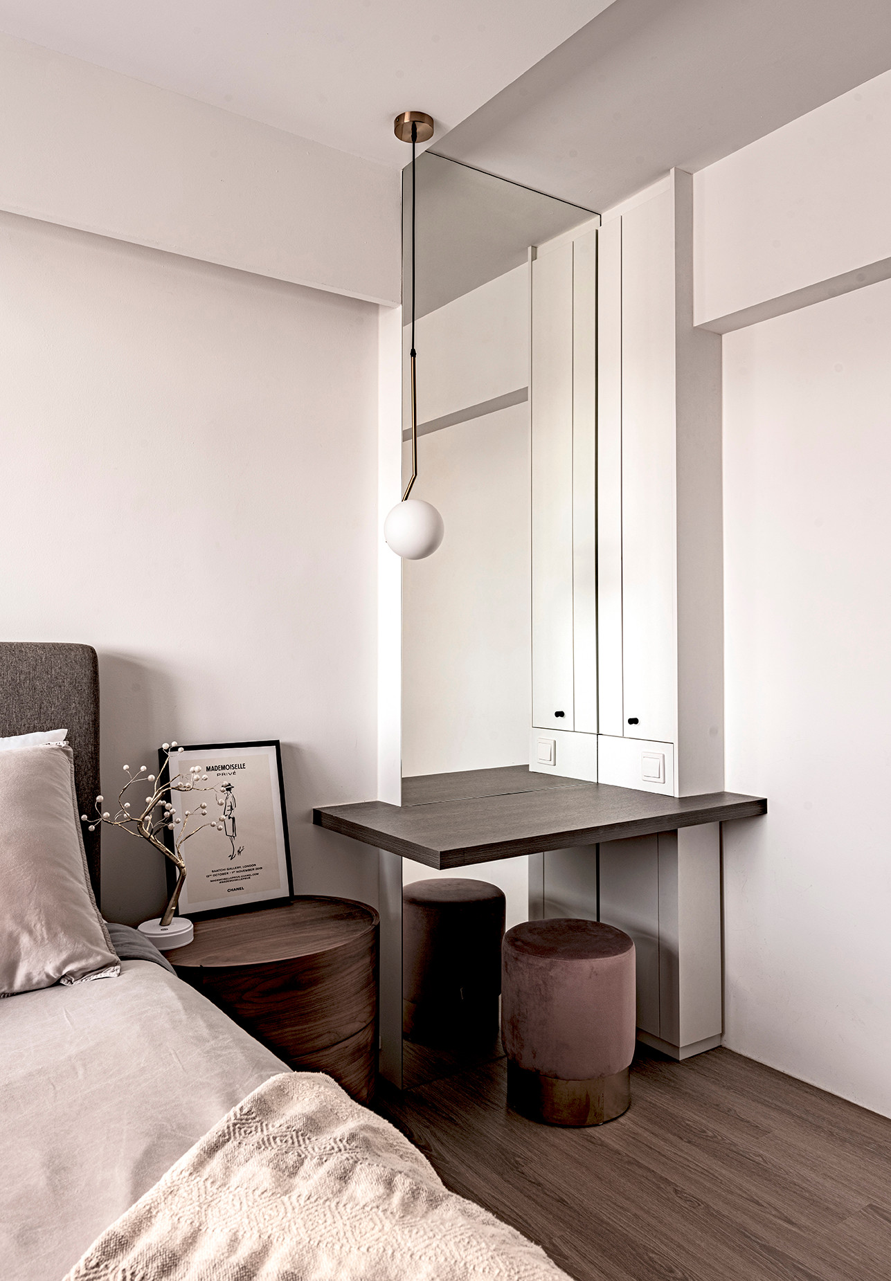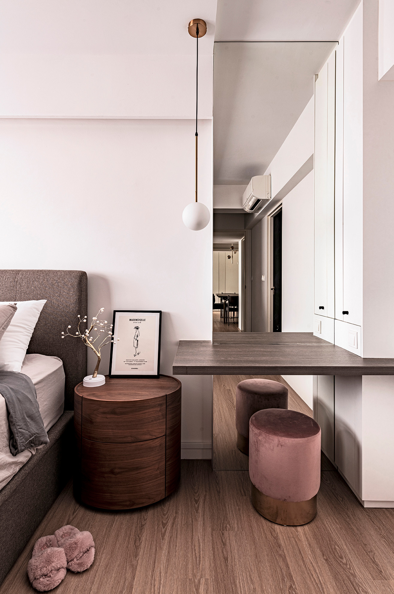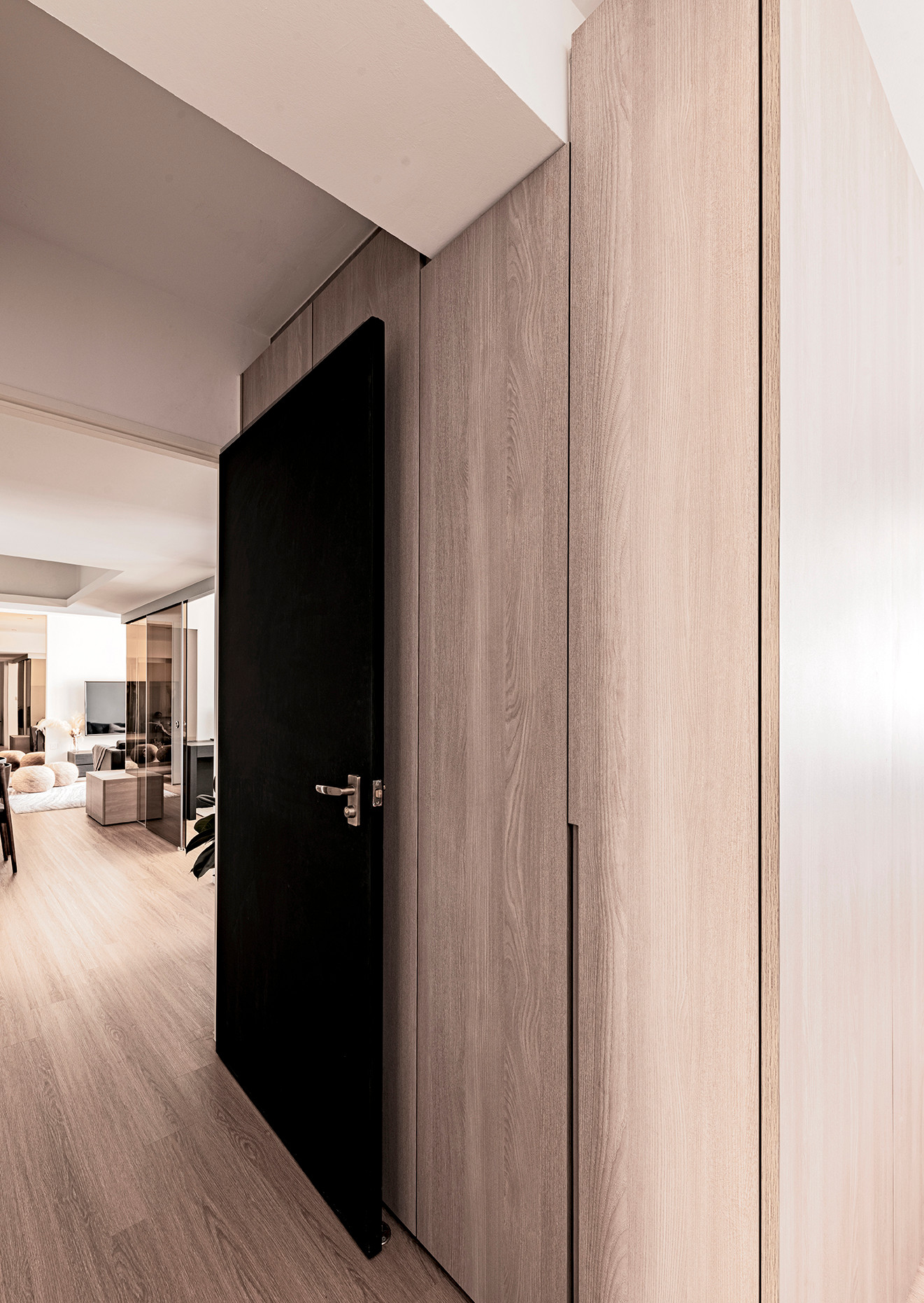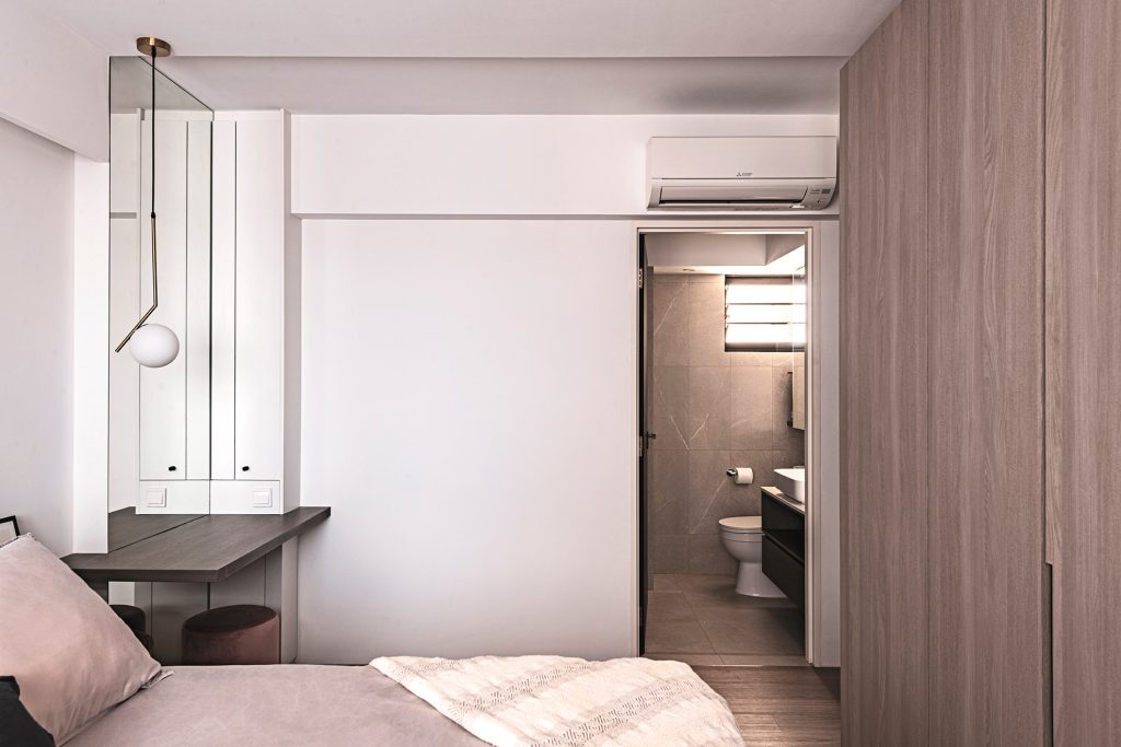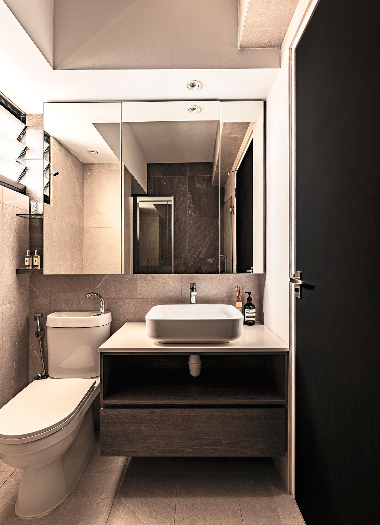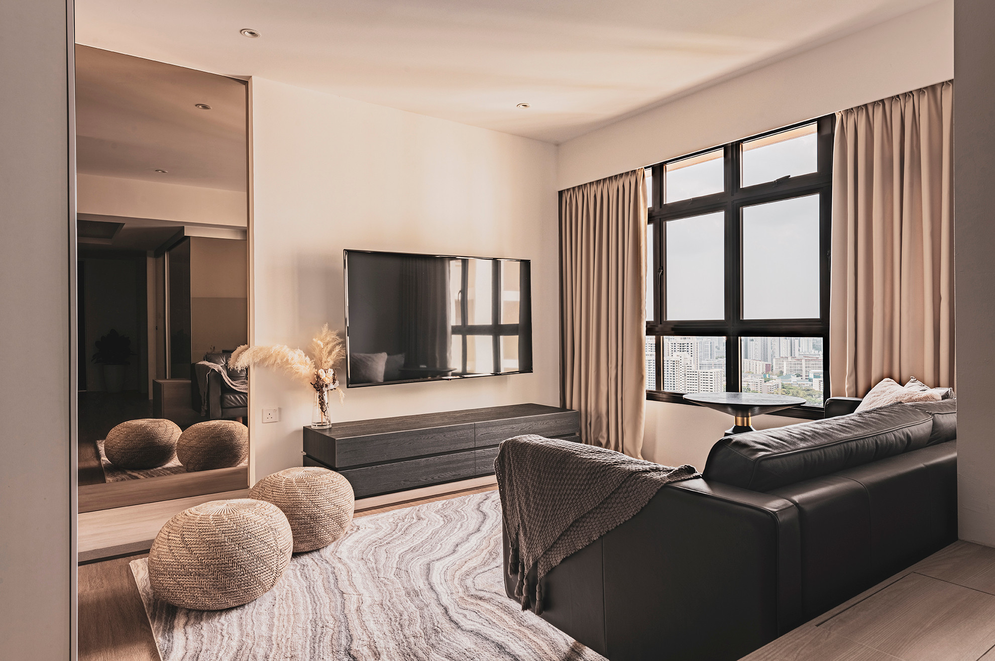 The owners wanted a bigger living space as they often host gatherings and hence we merged the kitchen, dining and living areas together to form an integrated space & also reduced the size of the study and child’s room to open up the dining area a bit more.