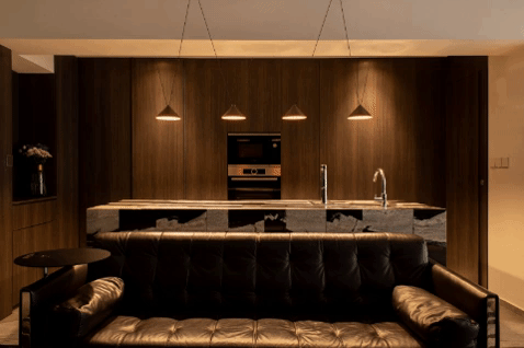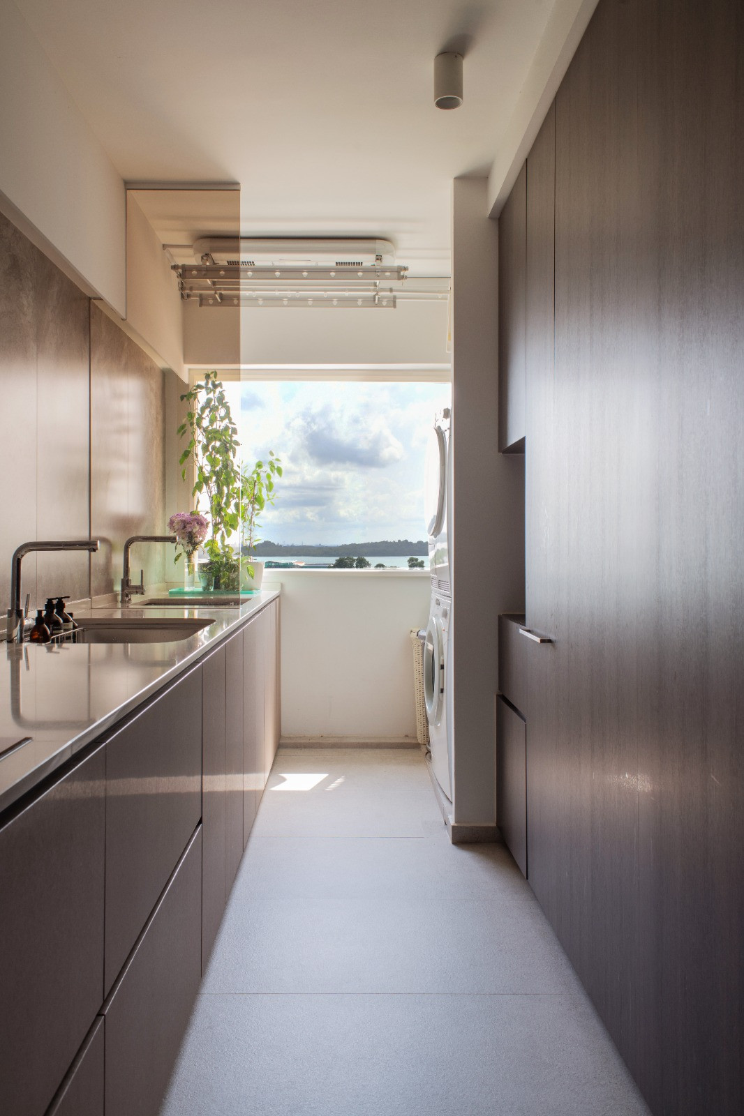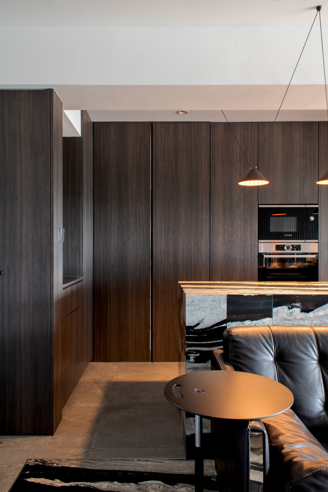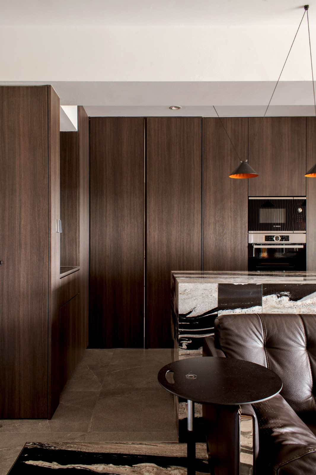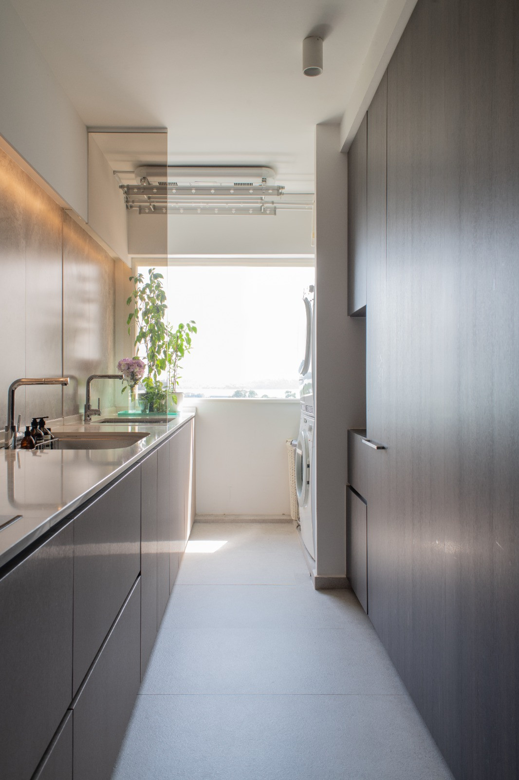 Behind the island you can find all the necessary appliances like wine fridges, coffee machines, ovens all integrated into the design. The wet kitchen can be closed off when necessary especially when they have guests over.