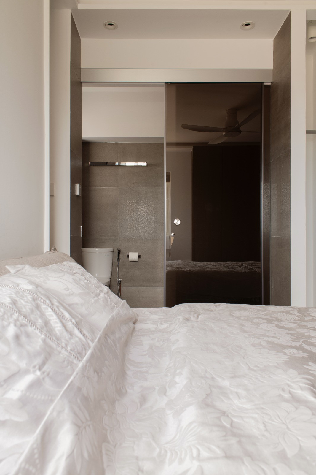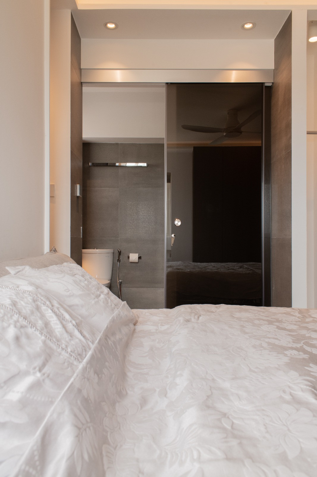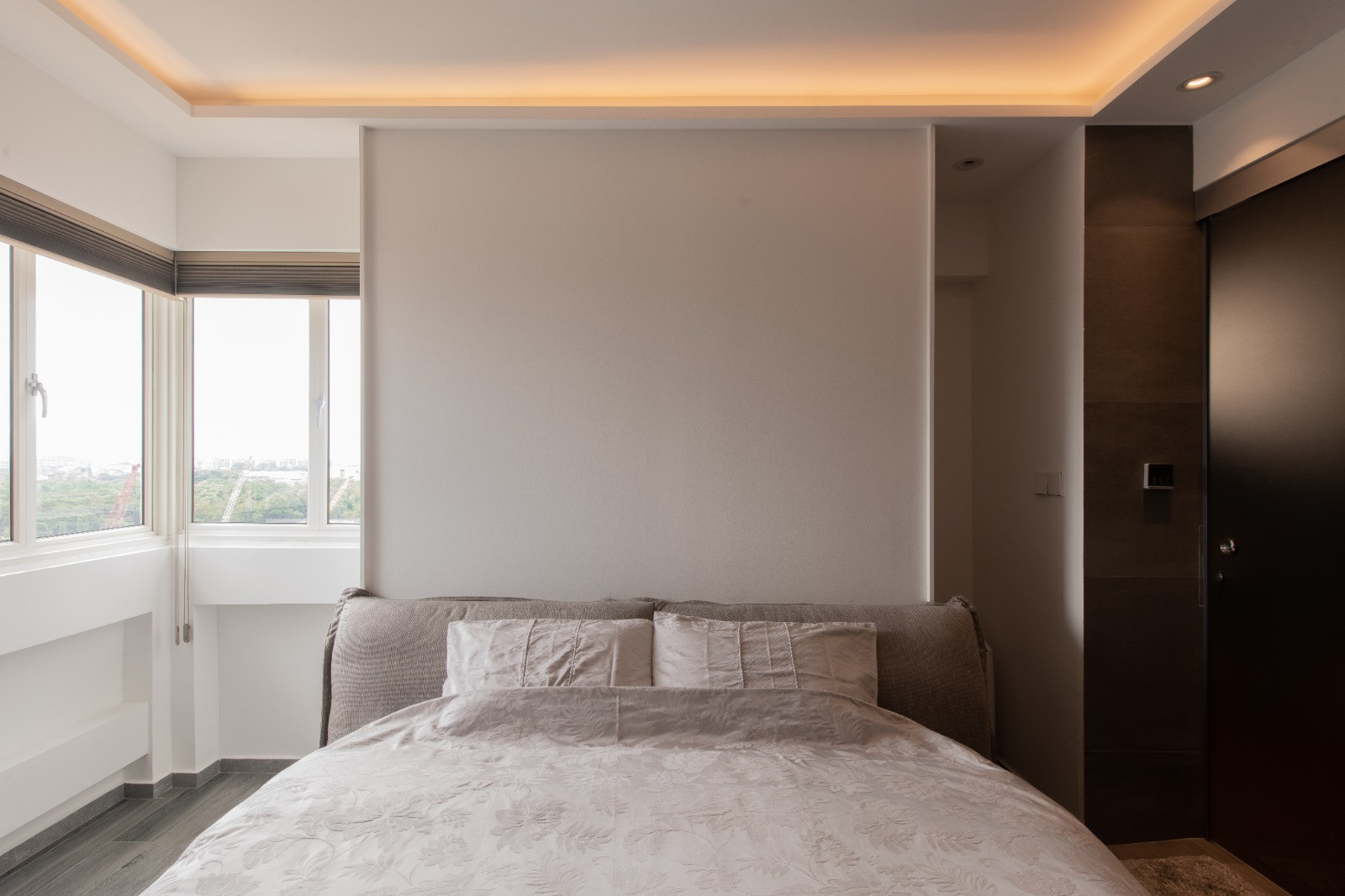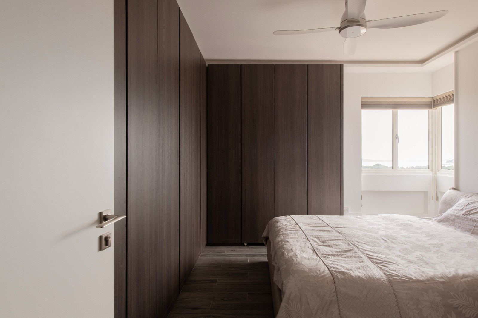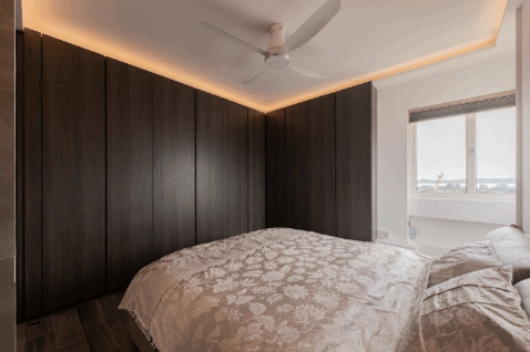 The master bedroom is especially designed to be adjourned to their son’s room as part of a sleep training routine for their son. There is a sliding door to connect both rooms together and there is also an option to close both the room’s door separately for privacy when their child is older. An interesting feature would be also a nook for their poodle to sleep in if he wishes to.