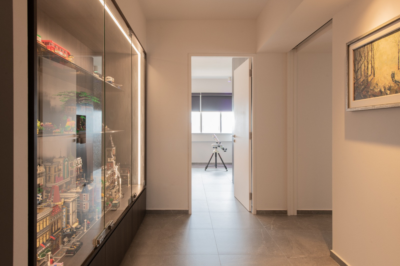 Last but not least, as the couple are Lego modular house collectors and they requested for a floor to ceiling lighted display cabinet to house all their collection in a dust free manner. We like how their beautiful collection enlivens the corridor to their rooms and makes their homes very cozy and personalized.