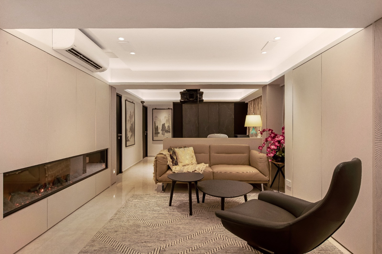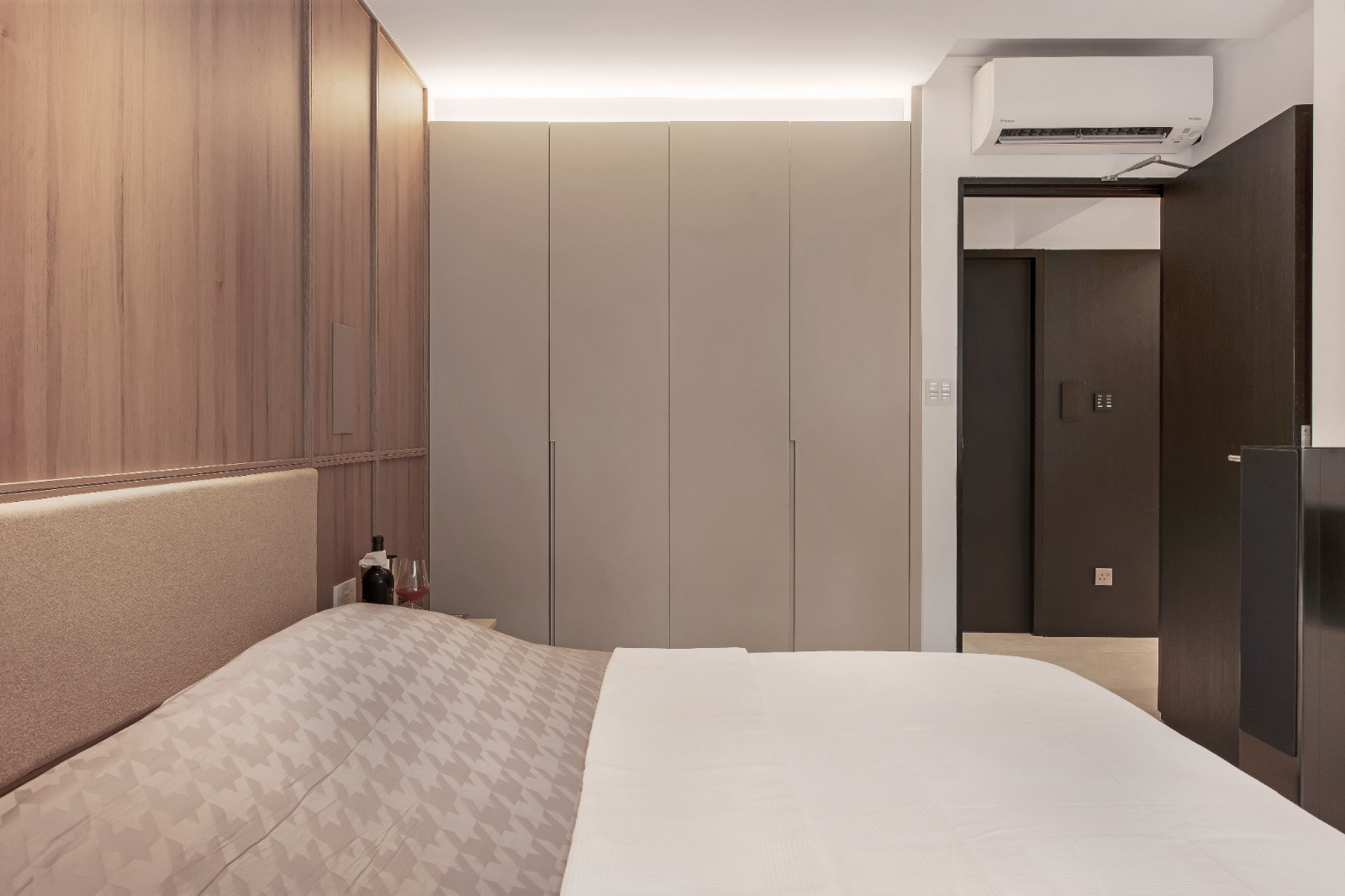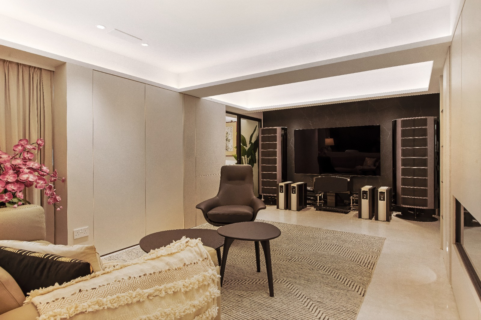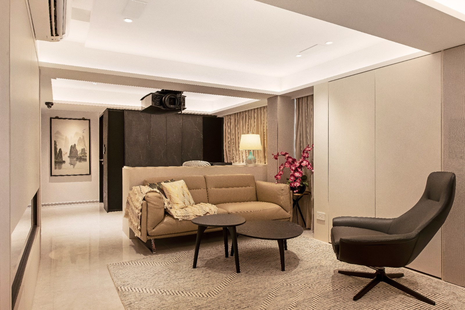 The master apartment is mostly in cream and neutrals for a bright, airy ambience and it goes well with the Chinese artwork from the owners’ personal collections over the years.