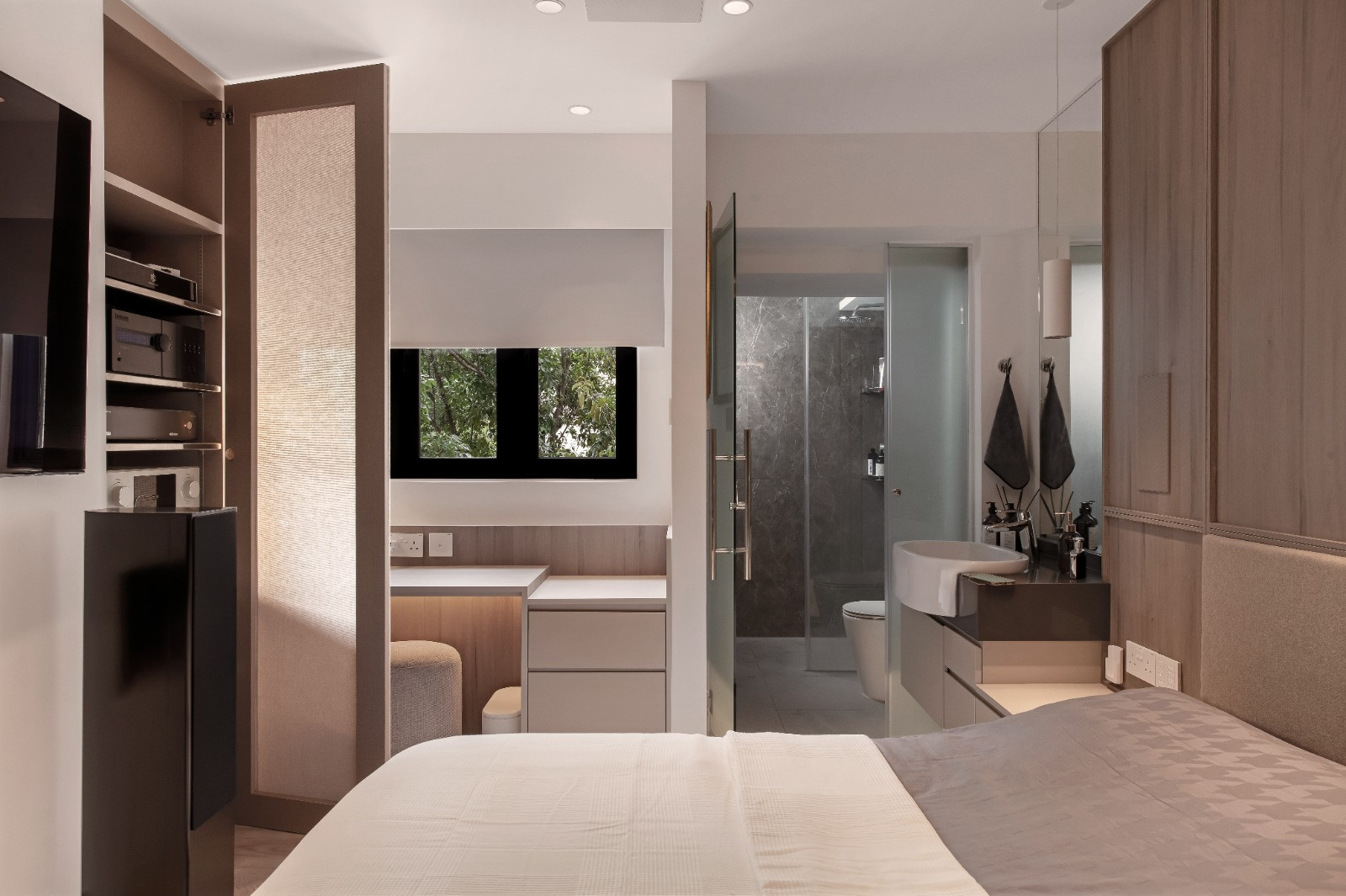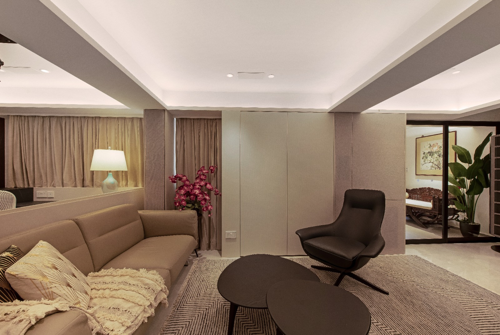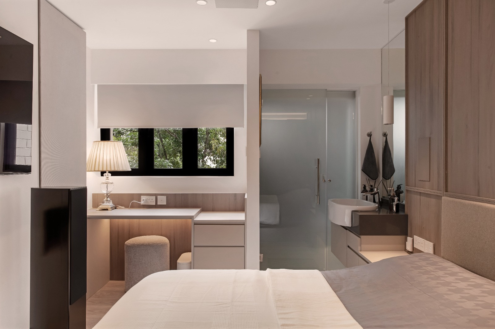 The master apartment is mostly in cream and neutrals for a bright, airy ambience and it goes well with the Chinese artwork from the owners’ personal collections over the years.