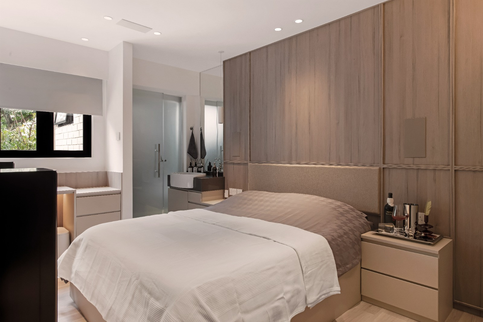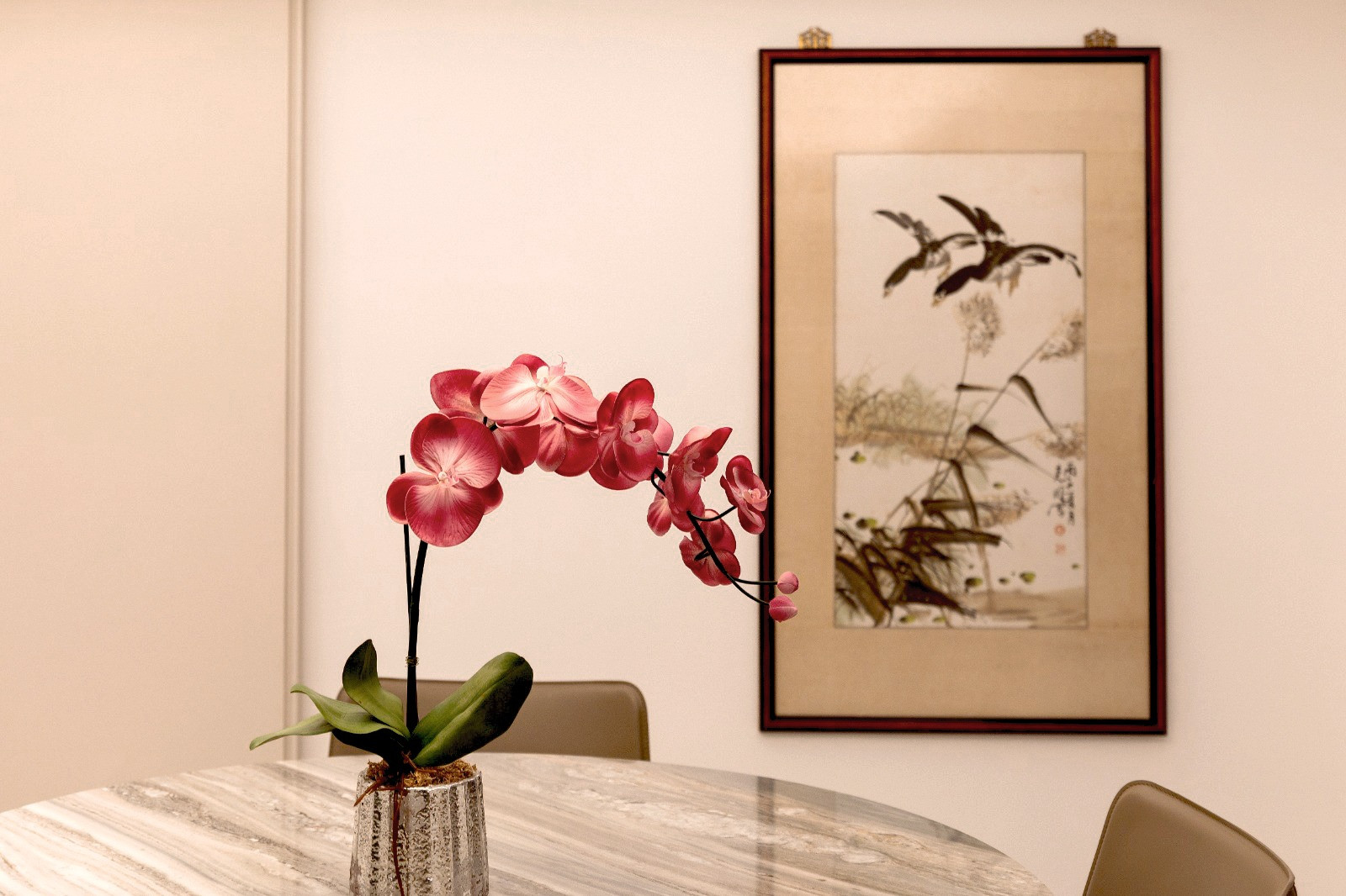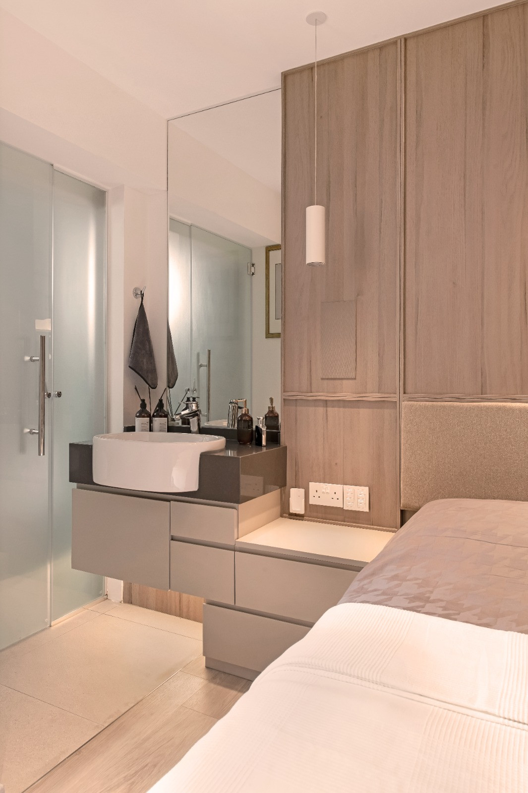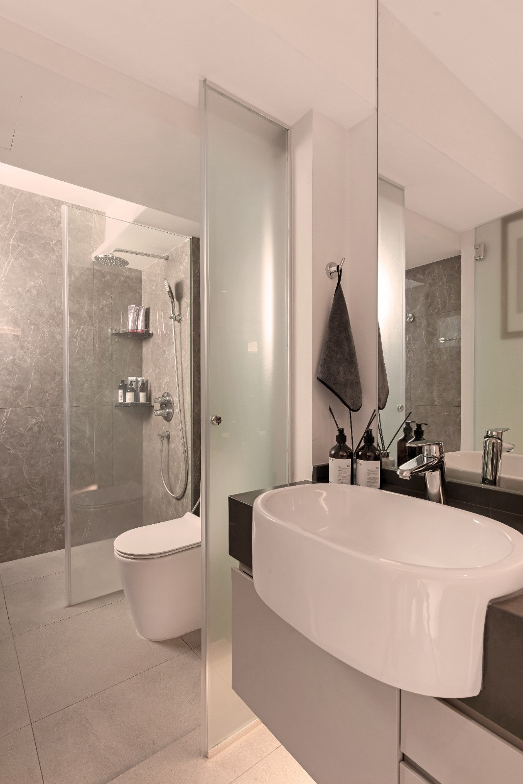 The master apartment is mostly in cream and neutrals for a bright, airy ambience and it goes well with the Chinese artwork from the owners’ personal collections over the years.