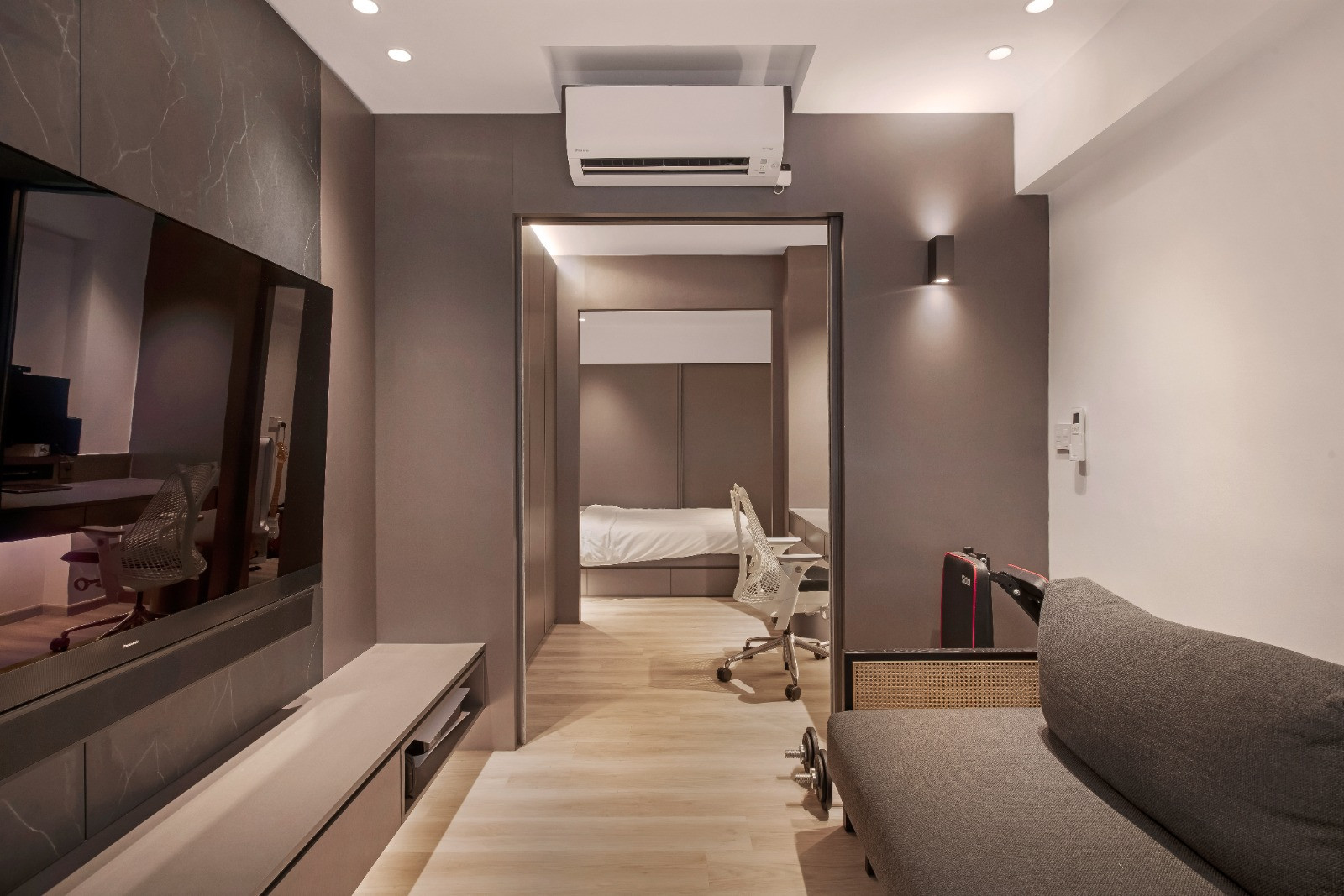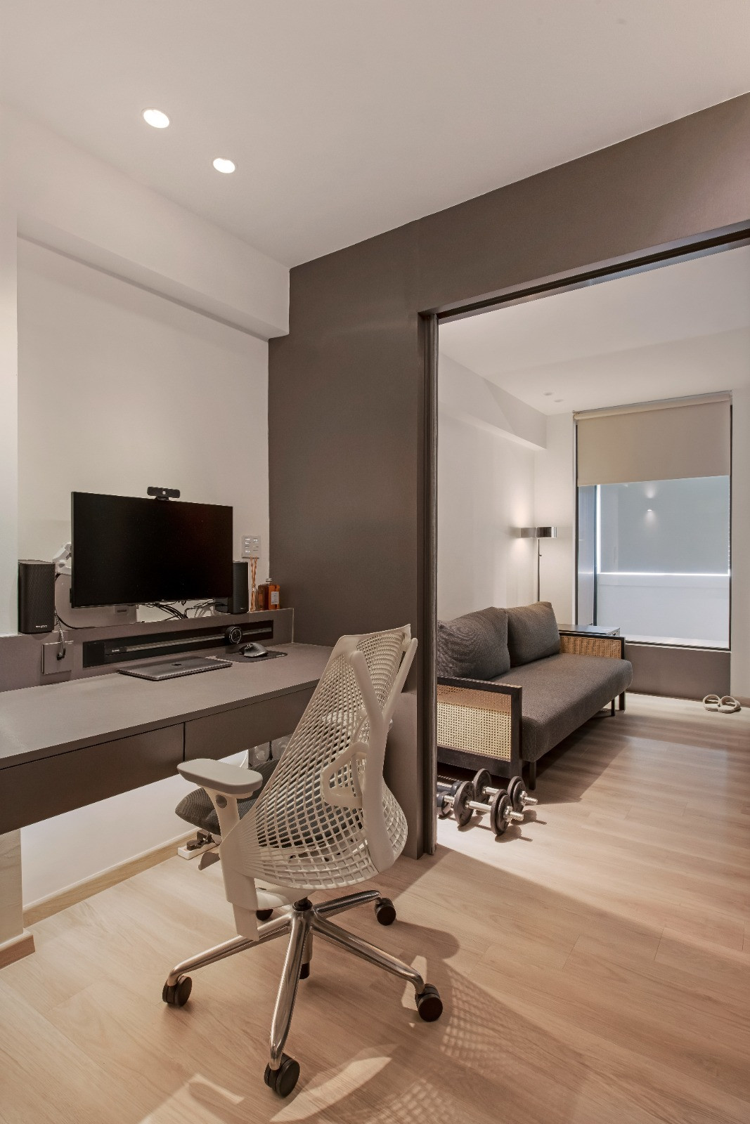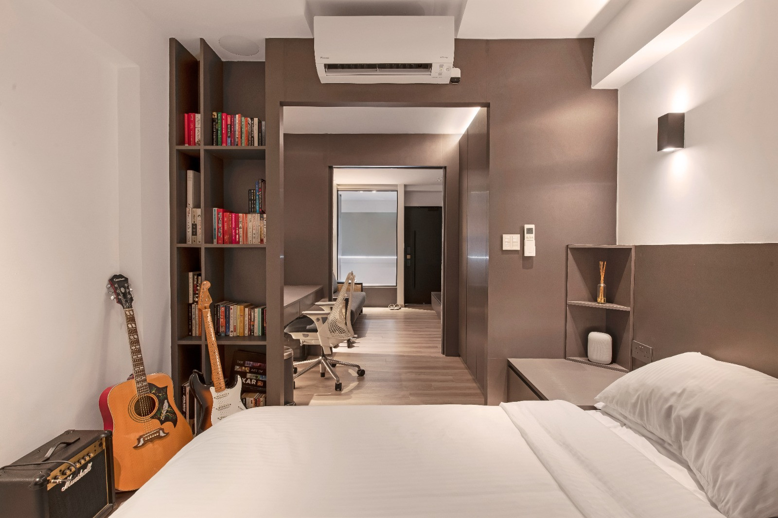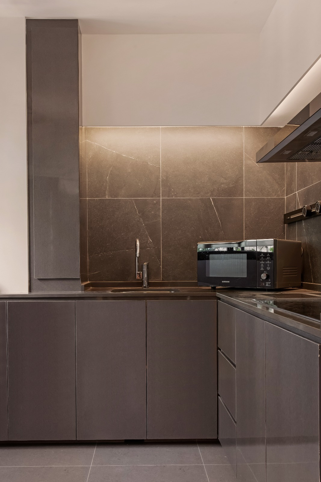 The junior master apartment is decked mostly in urbane grey and complete with its’ own living area, study area, bedroom as well as kitchen and bathroom. This ensures complete privacy for their son though he is in close proximity to his parents.