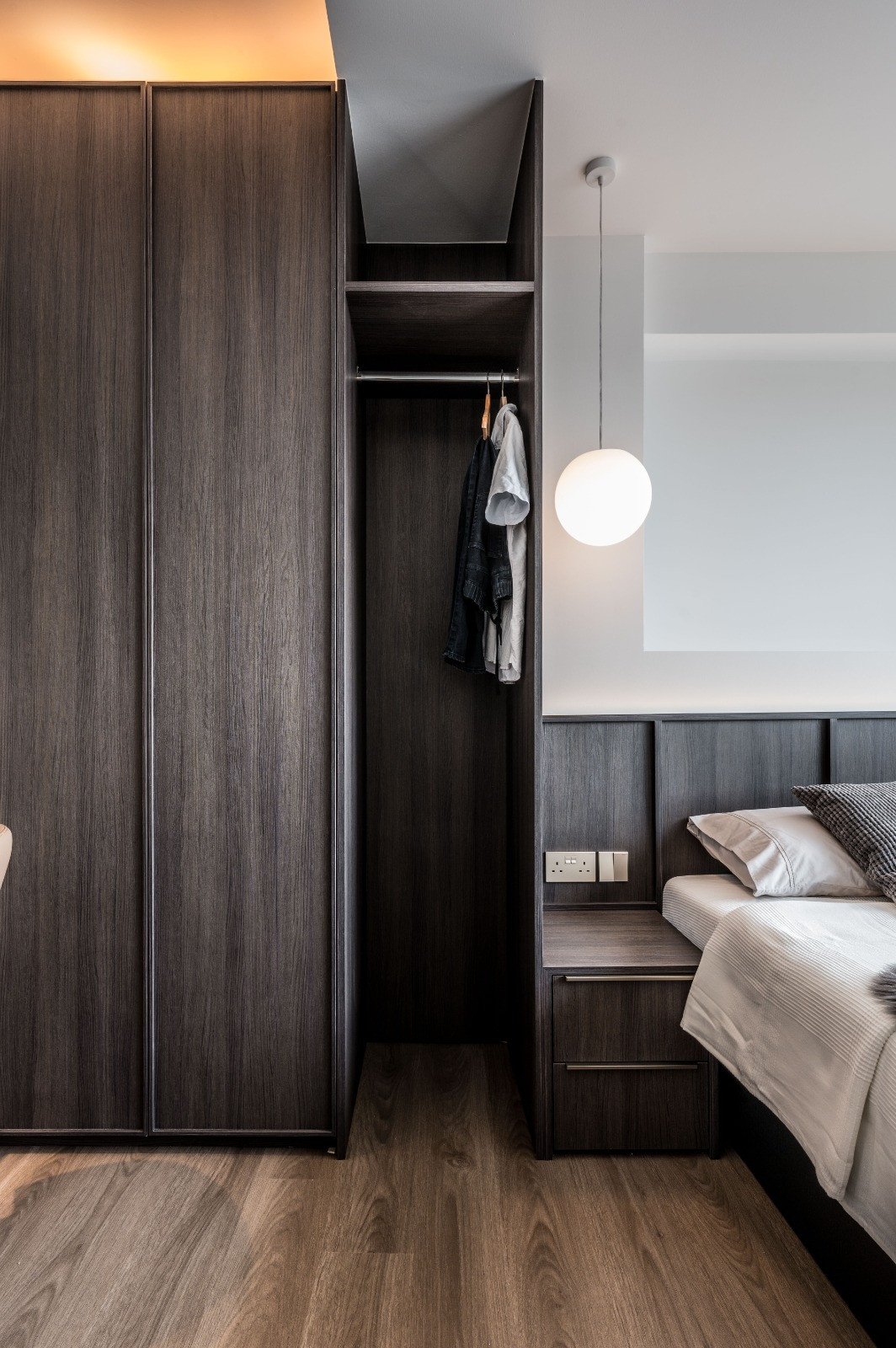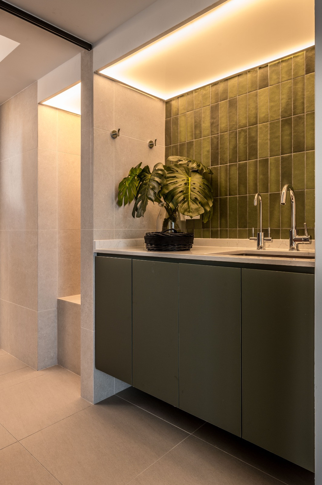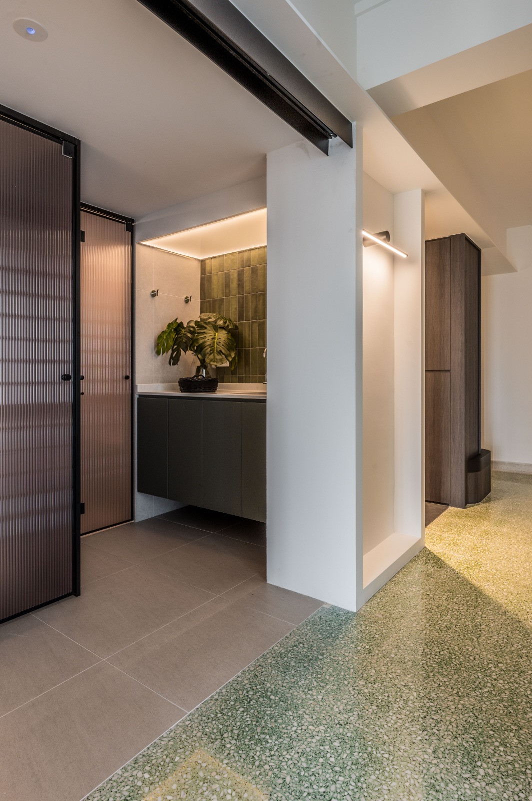 In the dining area, a simple yet elegant table serves as the heart of family meals, where they share their daily experiences and savor the culinary delights prepared in the adjacent kitchen. This emphasis on simplicity and mindfulness extends to every corner of the house, promoting relaxation and well-being. This home is a testament to the principles of modern zen, where simplicity and elegance create a sanctuary from the outside world, fostering peace, harmony, and togetherness.