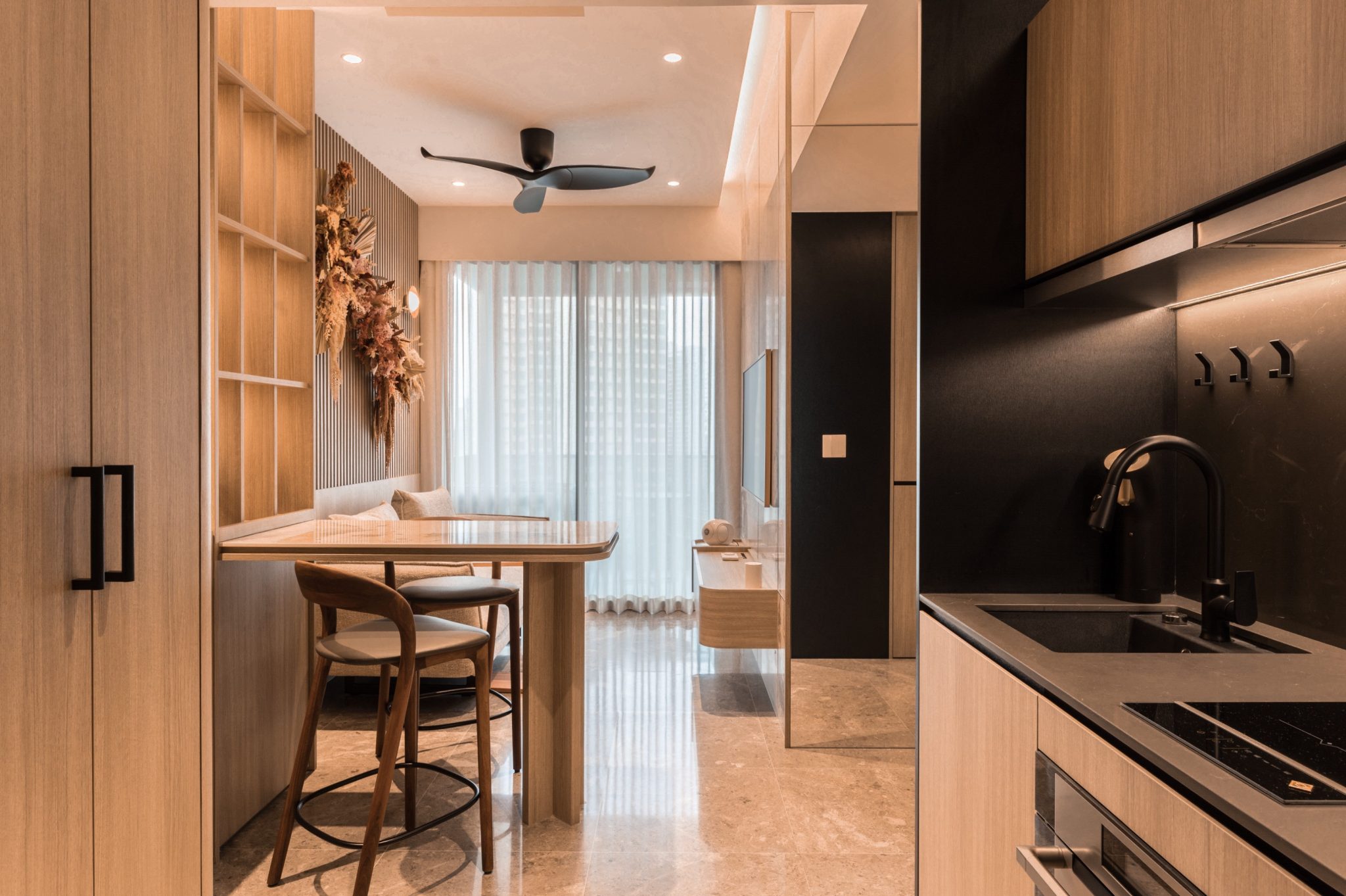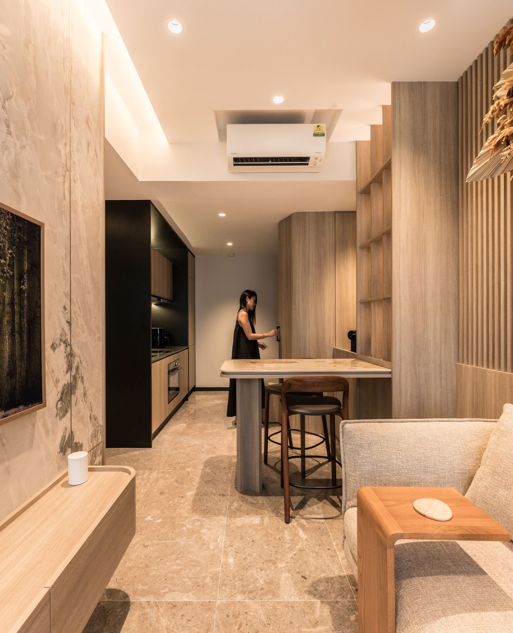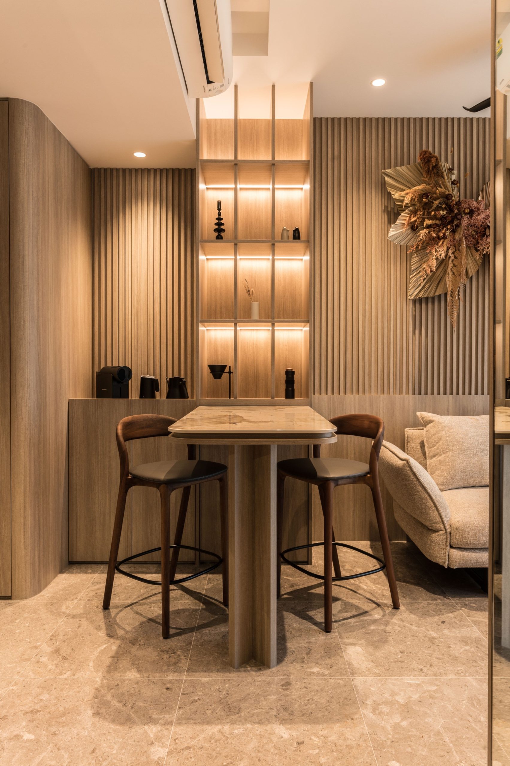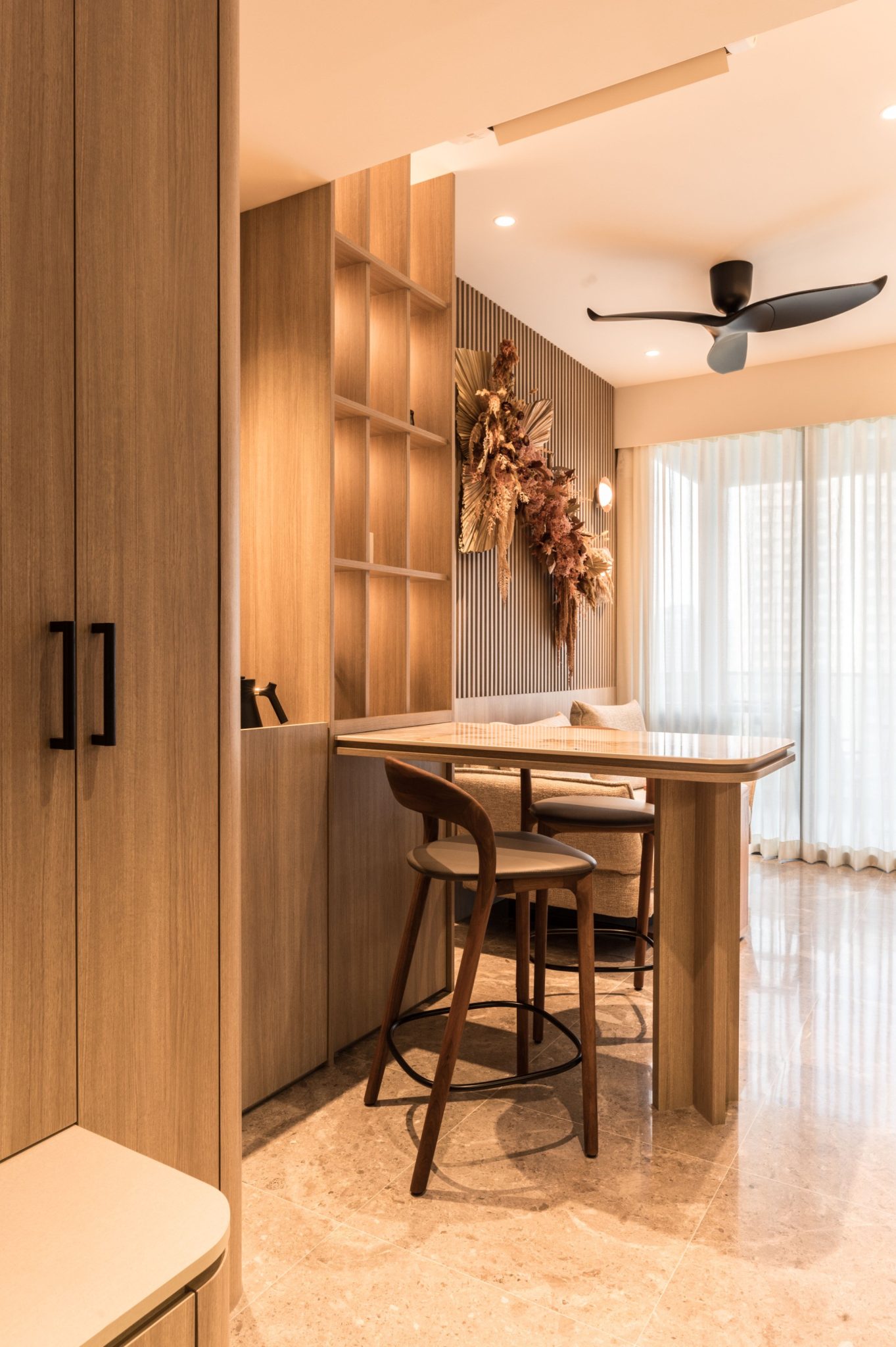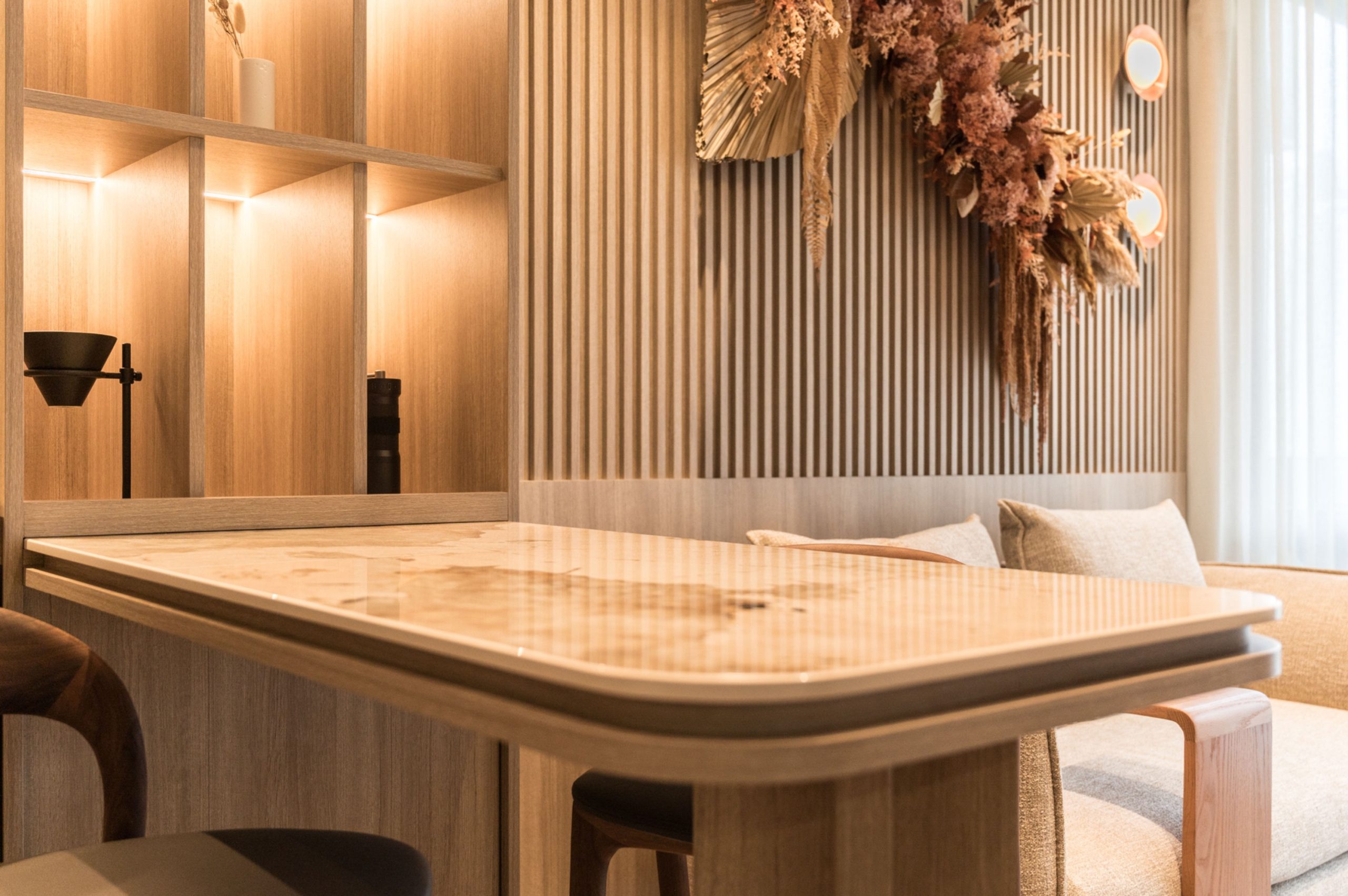 The heart of this serene abode is the open-concept kitchen, a true masterpiece reflecting the mother’s passion for cooking. With sleek lines, state-of-the-art appliances, and expansive countertops, the kitchen transforms meal preparation into a joyous and stress-free experience. The warm wood tones and minimalist cabinetry create a harmonious and inviting atmosphere. The open layout ensures she remains connected with her family as she c