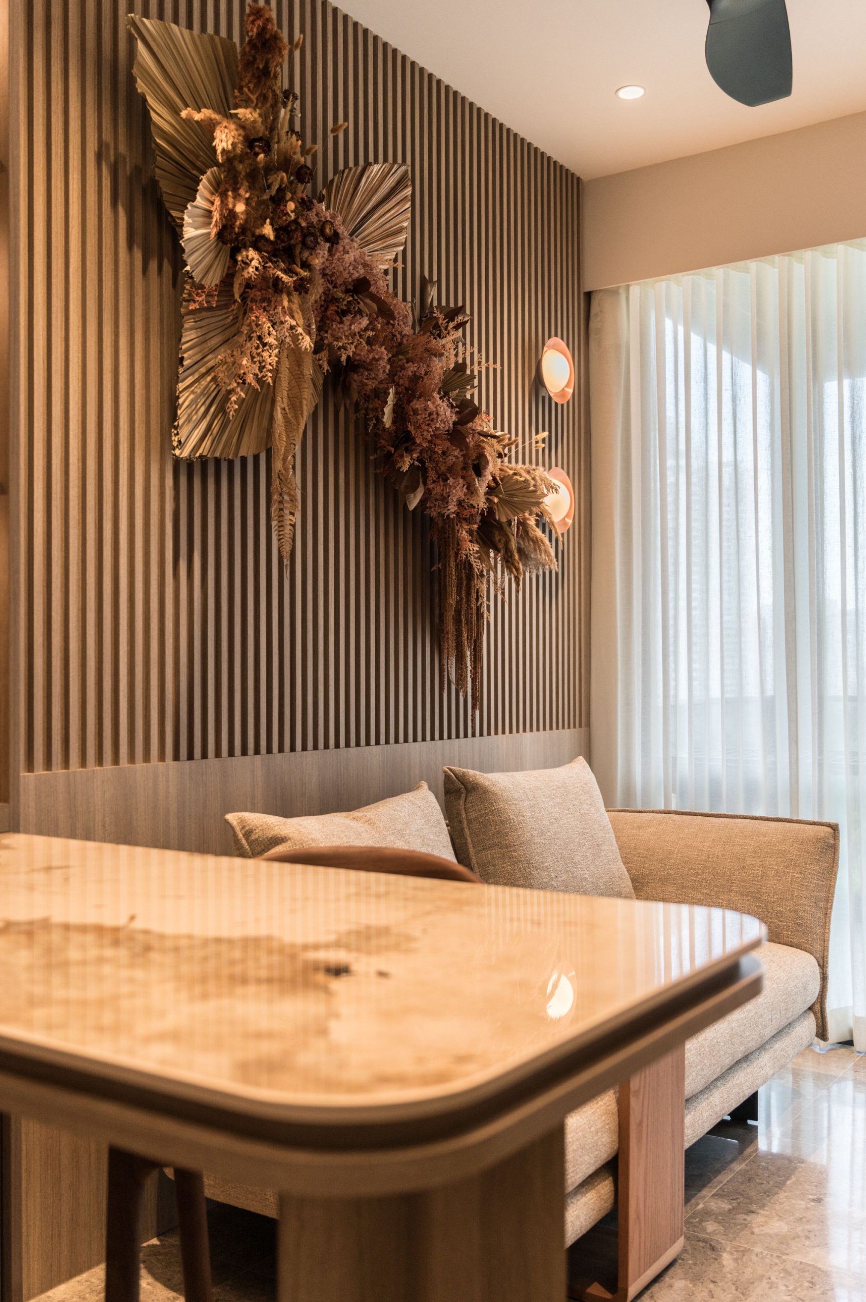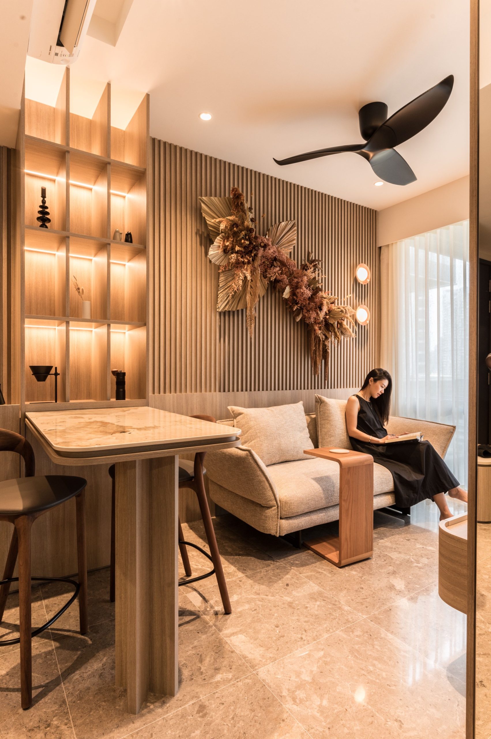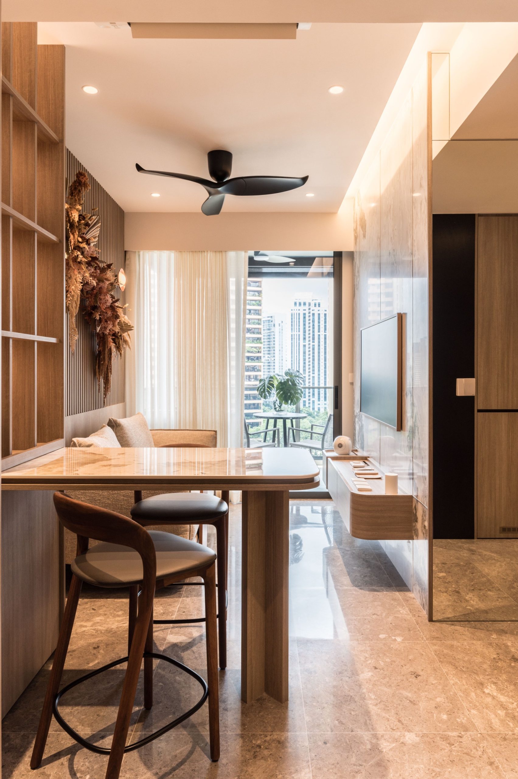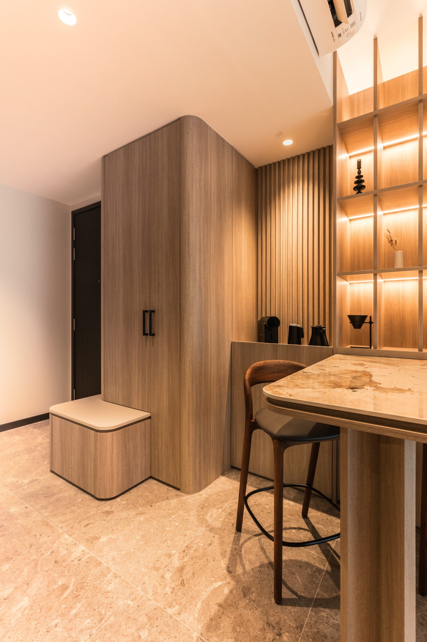 The heart of this serene abode is the open-concept kitchen, a true masterpiece reflecting the mother’s passion for cooking. With sleek lines, state-of-the-art appliances, and expansive countertops, the kitchen transforms meal preparation into a joyous and stress-free experience. The warm wood tones and minimalist cabinetry create a harmonious and inviting atmosphere. The open layout ensures she remains connected with her family as she c