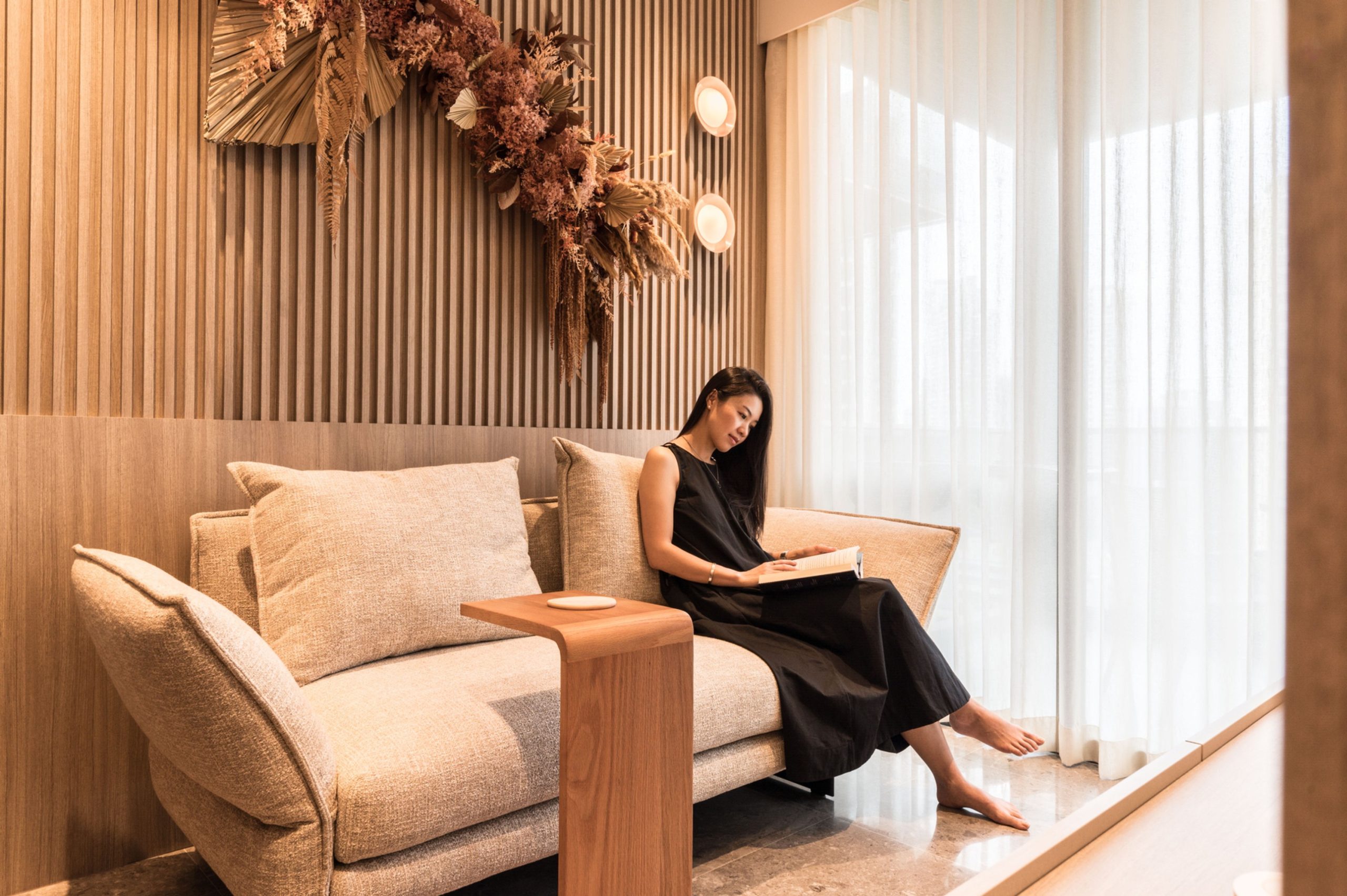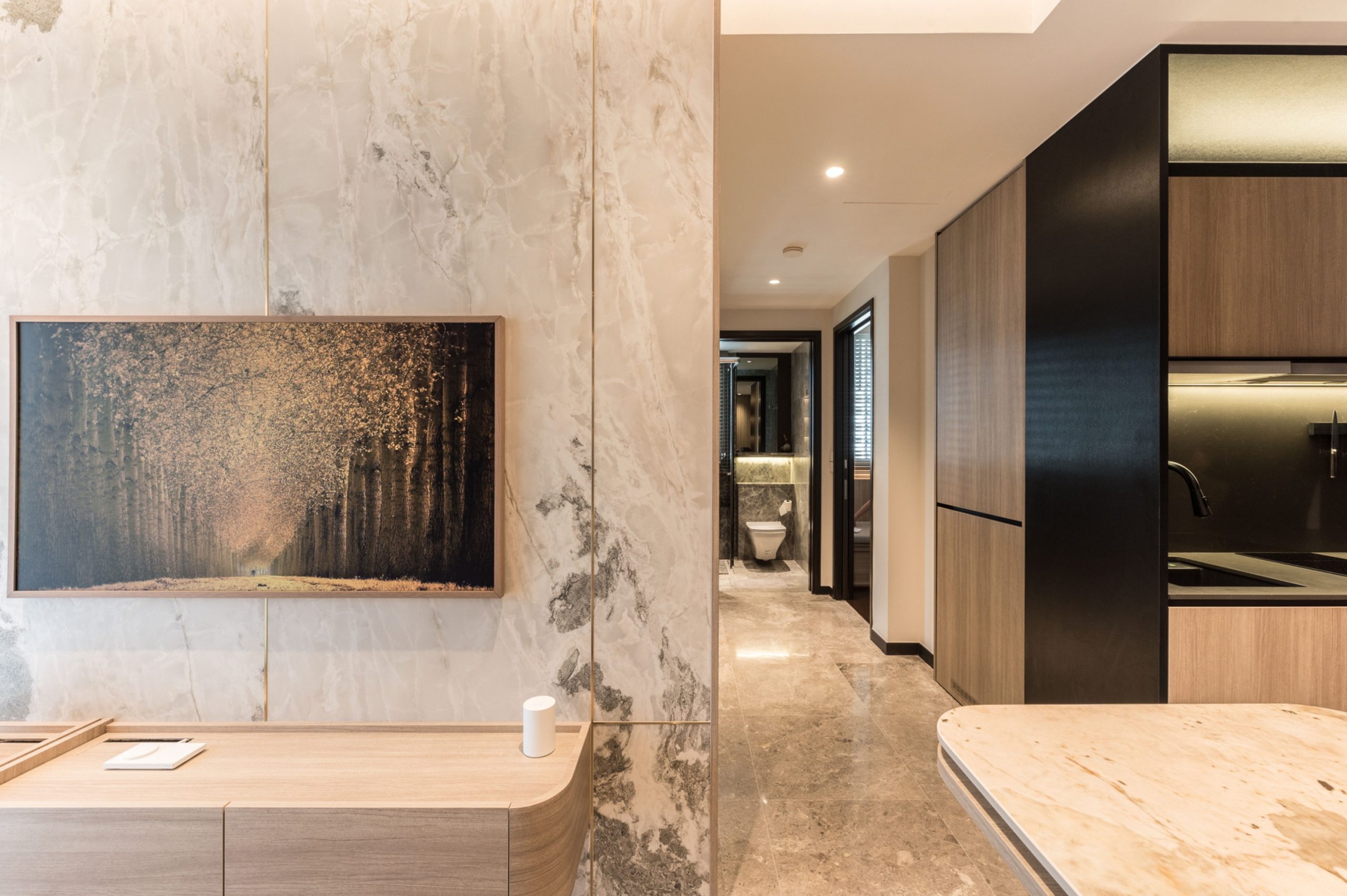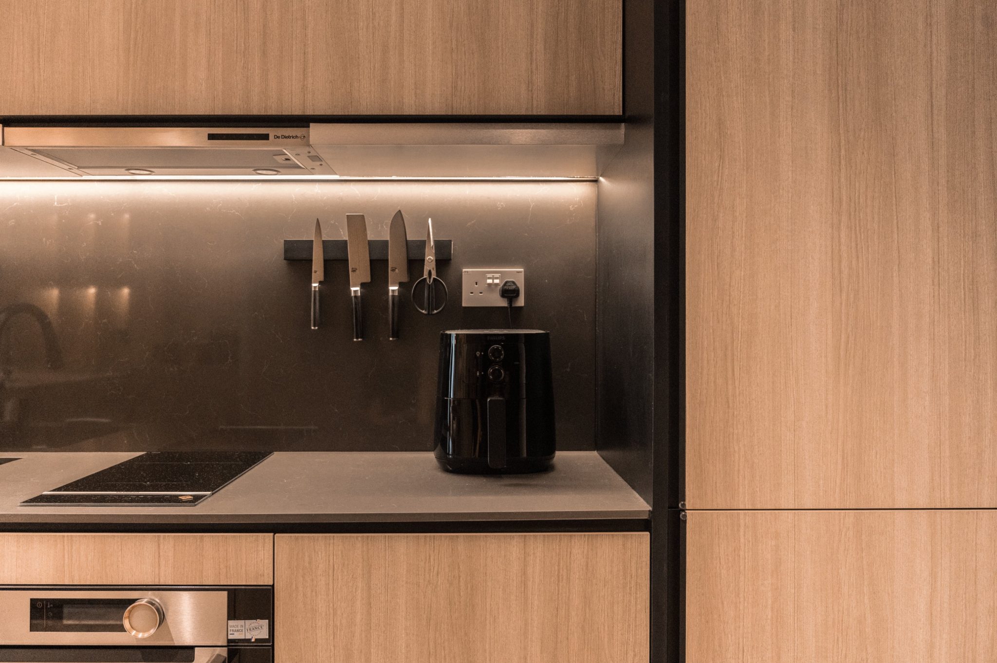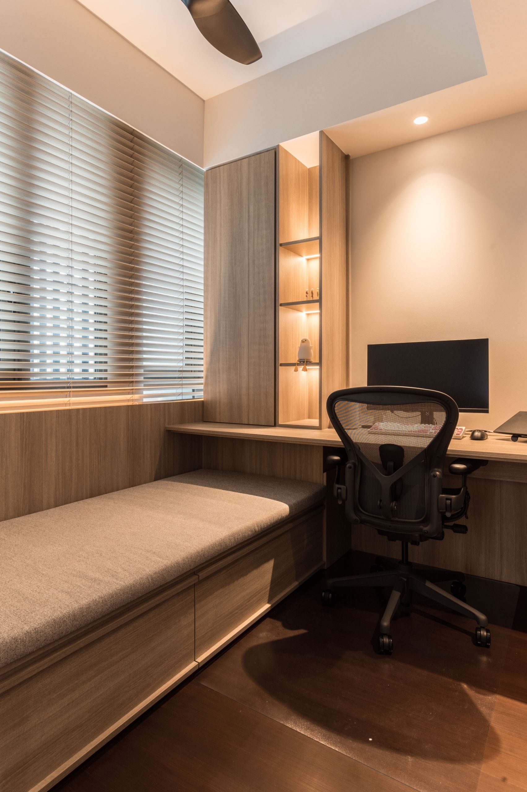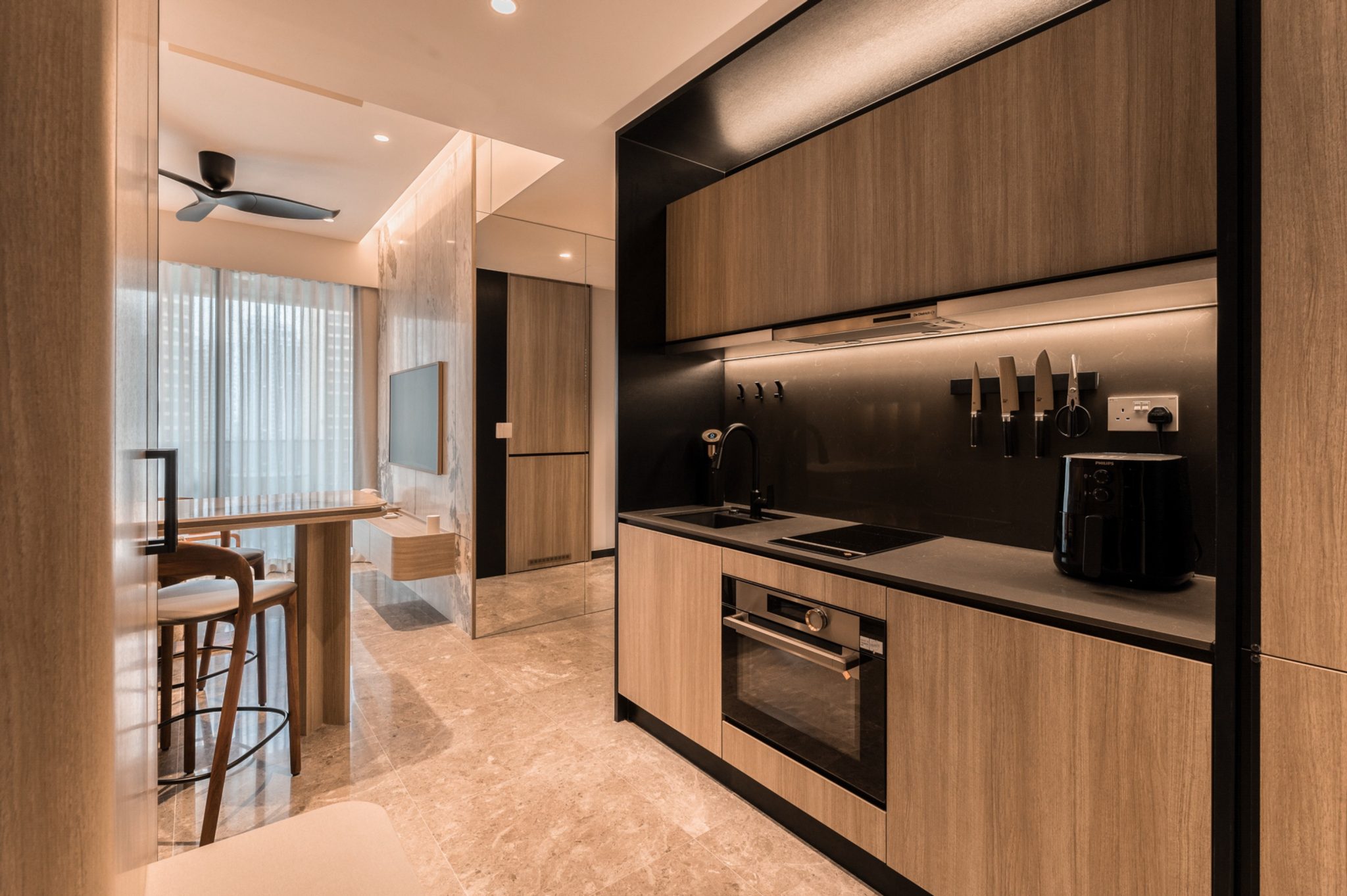 The heart of this serene abode is the open-concept kitchen, a true masterpiece reflecting the mother’s passion for cooking. With sleek lines, state-of-the-art appliances, and expansive countertops, the kitchen transforms meal preparation into a joyous and stress-free experience. The warm wood tones and minimalist cabinetry create a harmonious and inviting atmosphere. The open layout ensures she remains connected with her family as she c
