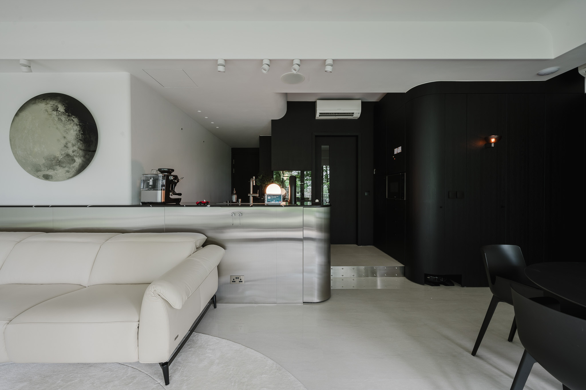 The design concept takes inspiration from the enigmatic interiors of old submarines and the silent opulence of European castles. Named Submerged Grandeur, this concept layers rich materiality and bold detailing to create a space that feels both mysterious and expansive. Monochrome tones anchor the aesthetic while a grand yet minimalist spatial choreography guides movement through the home.