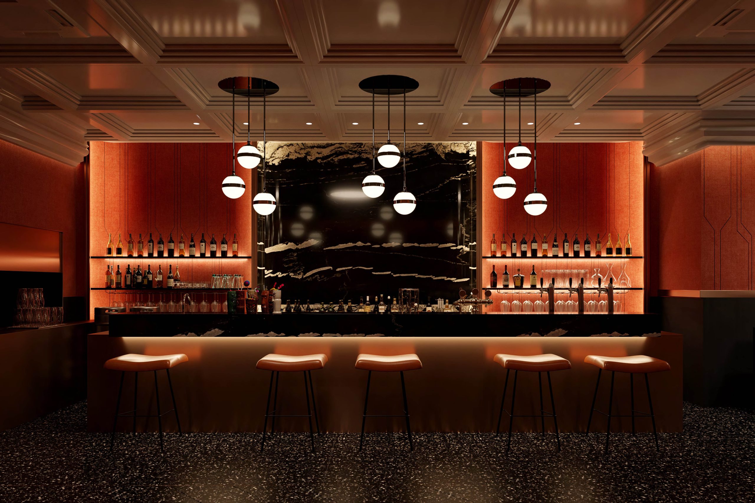 The design concept embraces the idea of contrast—juxtaposing rich, vibrant colors with sleek, modern finishes and mid-century touches. This blend of elements ensures the bistro feels both timeless and contemporary, appealing to a wide range of guests. The space is designed to be cozy yet sophisticated, encouraging guests to relax and enjoy their dining experience.