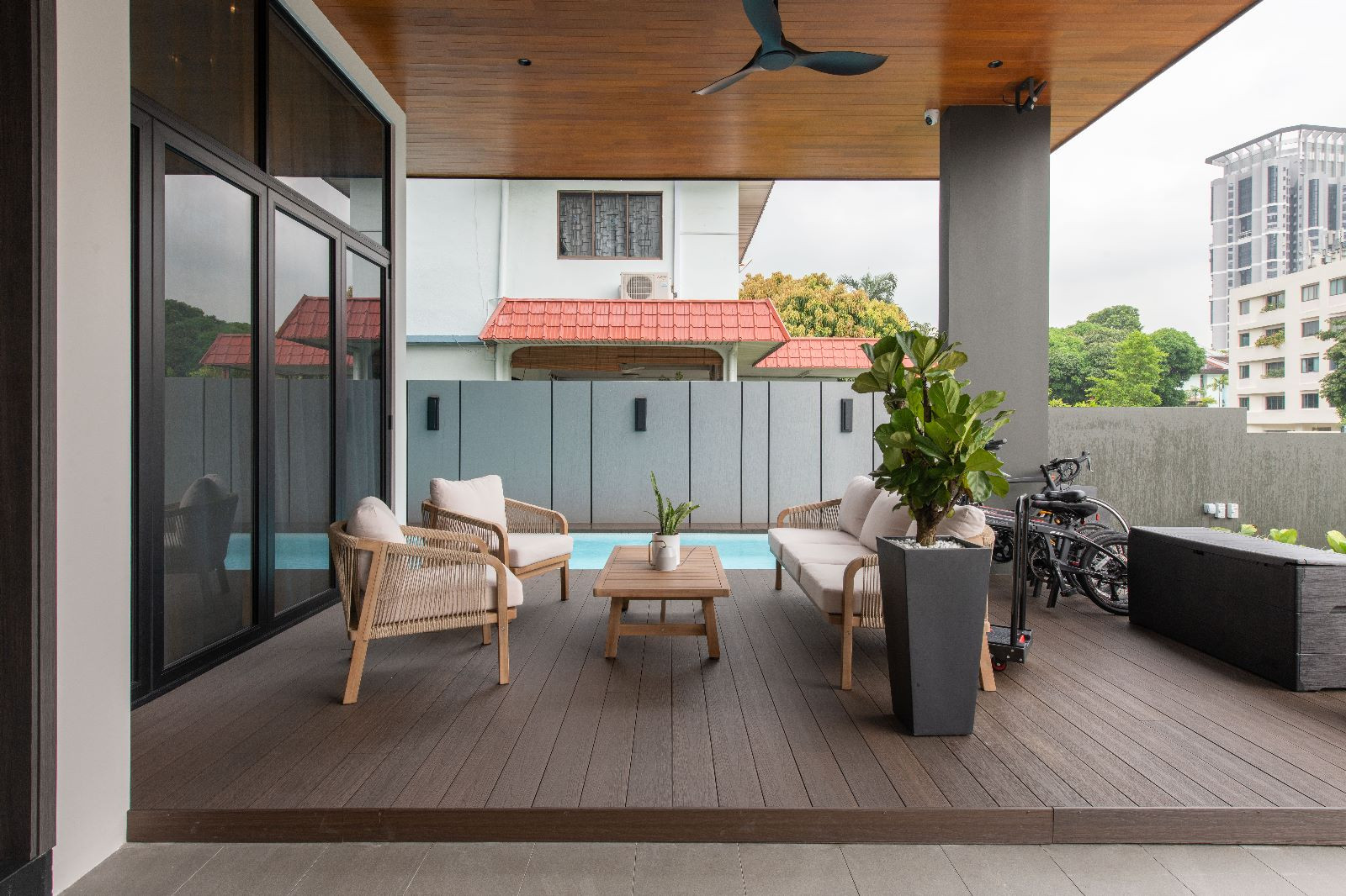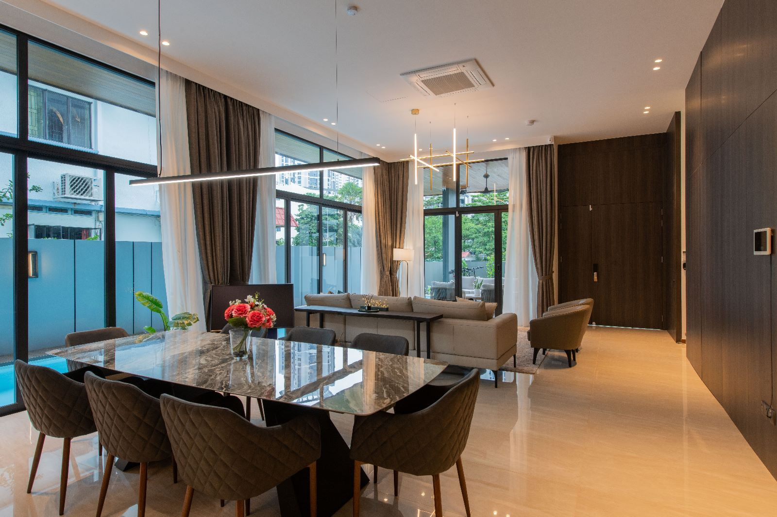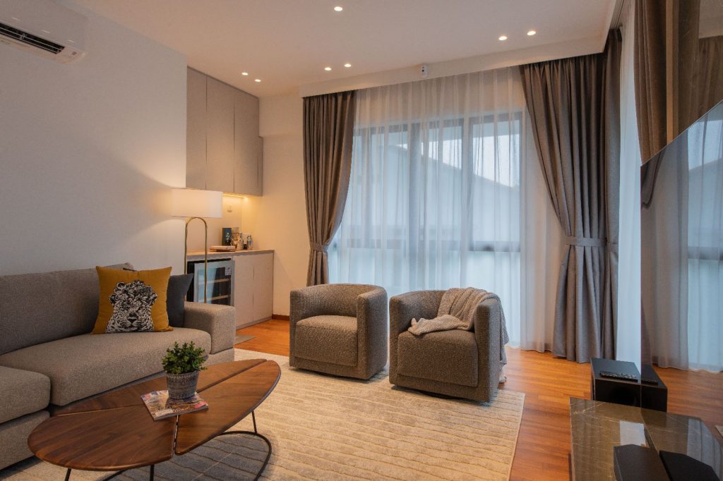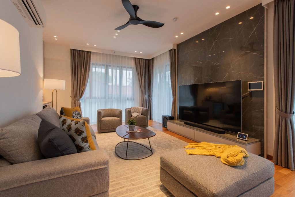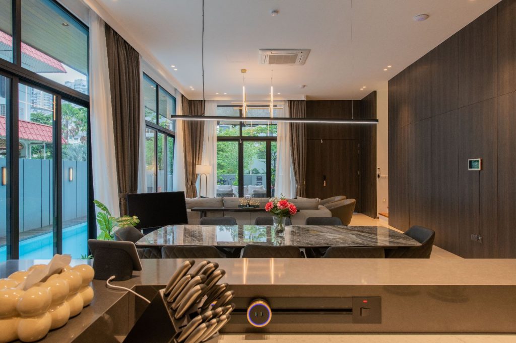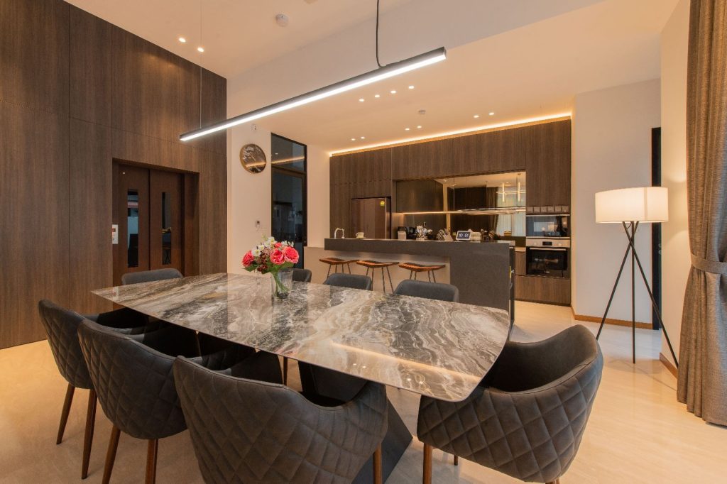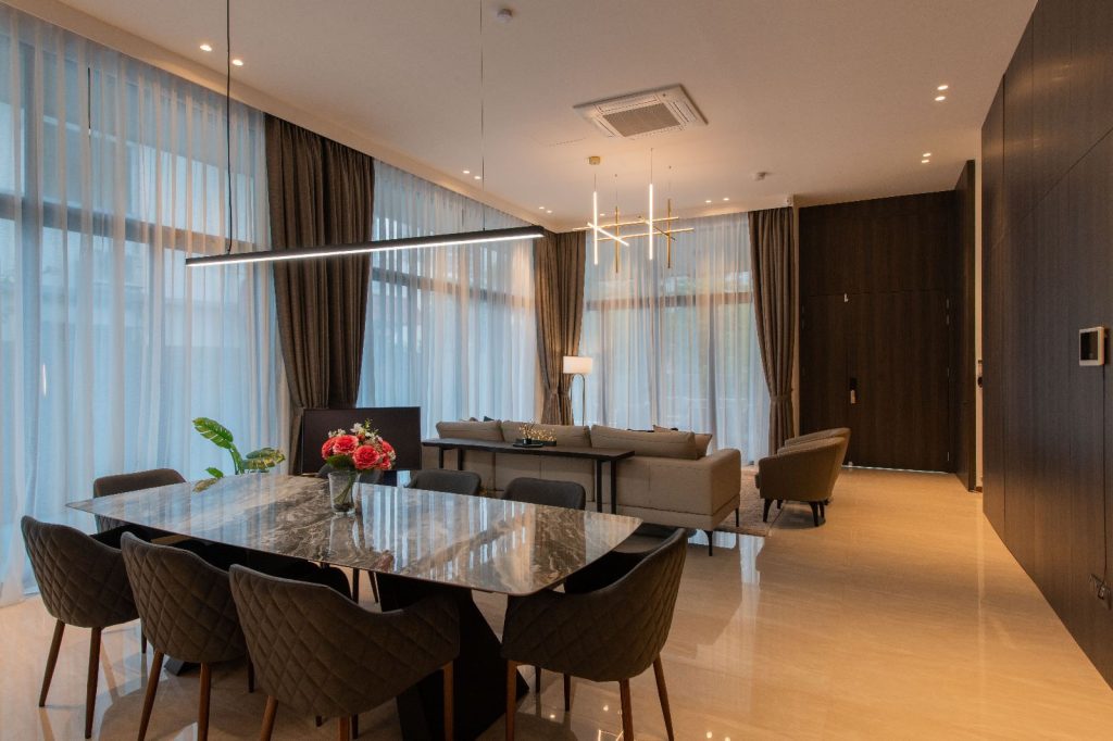 Amidst the lush greenery, there stands a sprawling semi-detached haven – a residence that blends contemporary luxury with the warmth of family bonds. The 6000 sqft abode caters to the needs of a couple, their two children, a doting grandparent, and a dedicated helper. Their story is one of humble luxury, where they find joy in the company of friends and family, valuing quality time and good conversations.