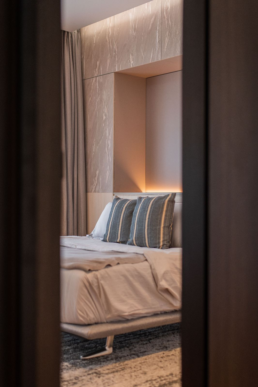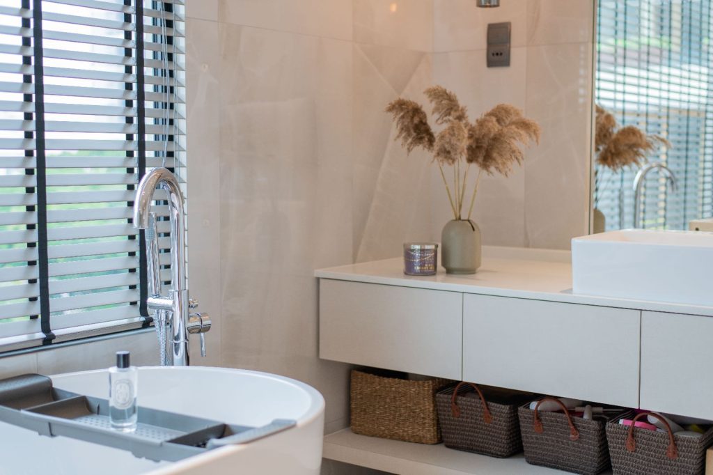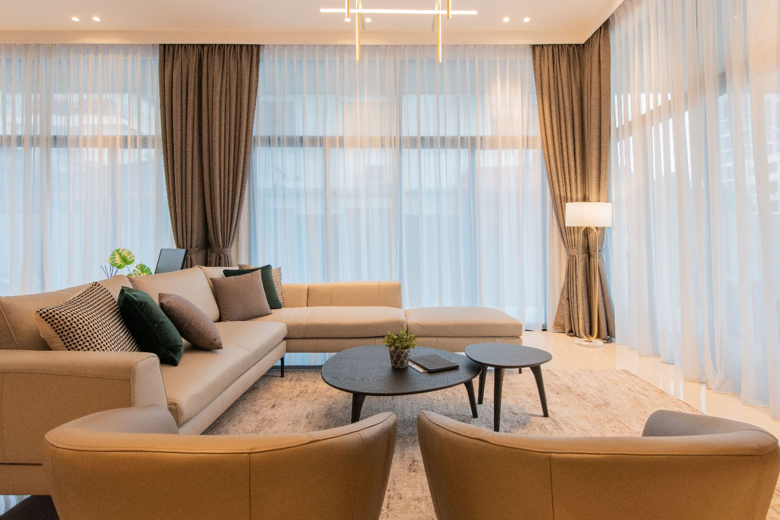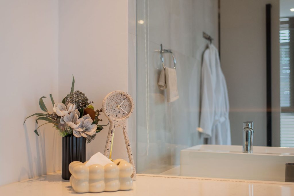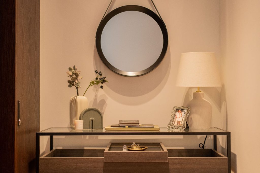 The architectural essence of the home is contemporary luxury. The aesthetic is clean and sophisticated, promising a style that transcends time. It’s an investment in a space they plan to call home for decades to come. Earthy tones have been chosen to harmonize with the house’s exterior, creating a consistent design language throughout the residence.