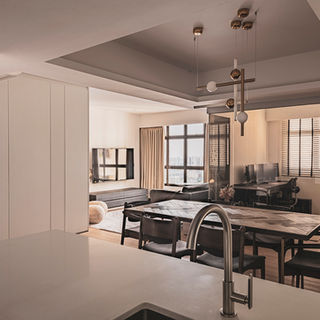 The owners wanted a bigger living space as they often host gatherings and hence we merged the kitchen, dining and living areas together to form an integrated space & also reduced the size of the study and child’s room to open up the dining area a bit more.
